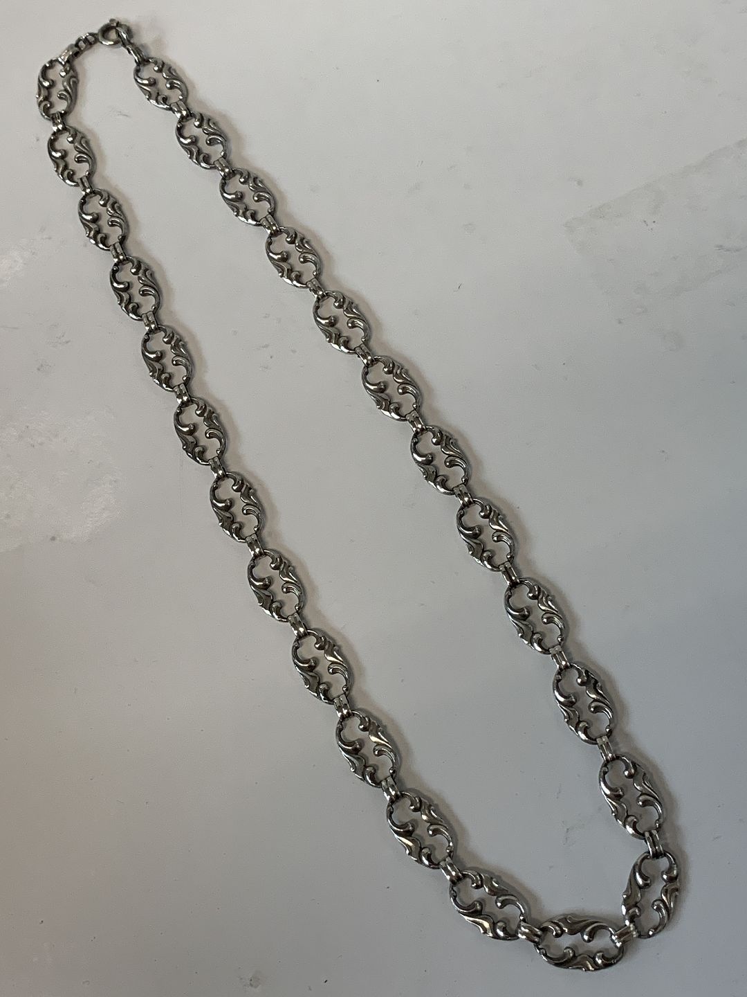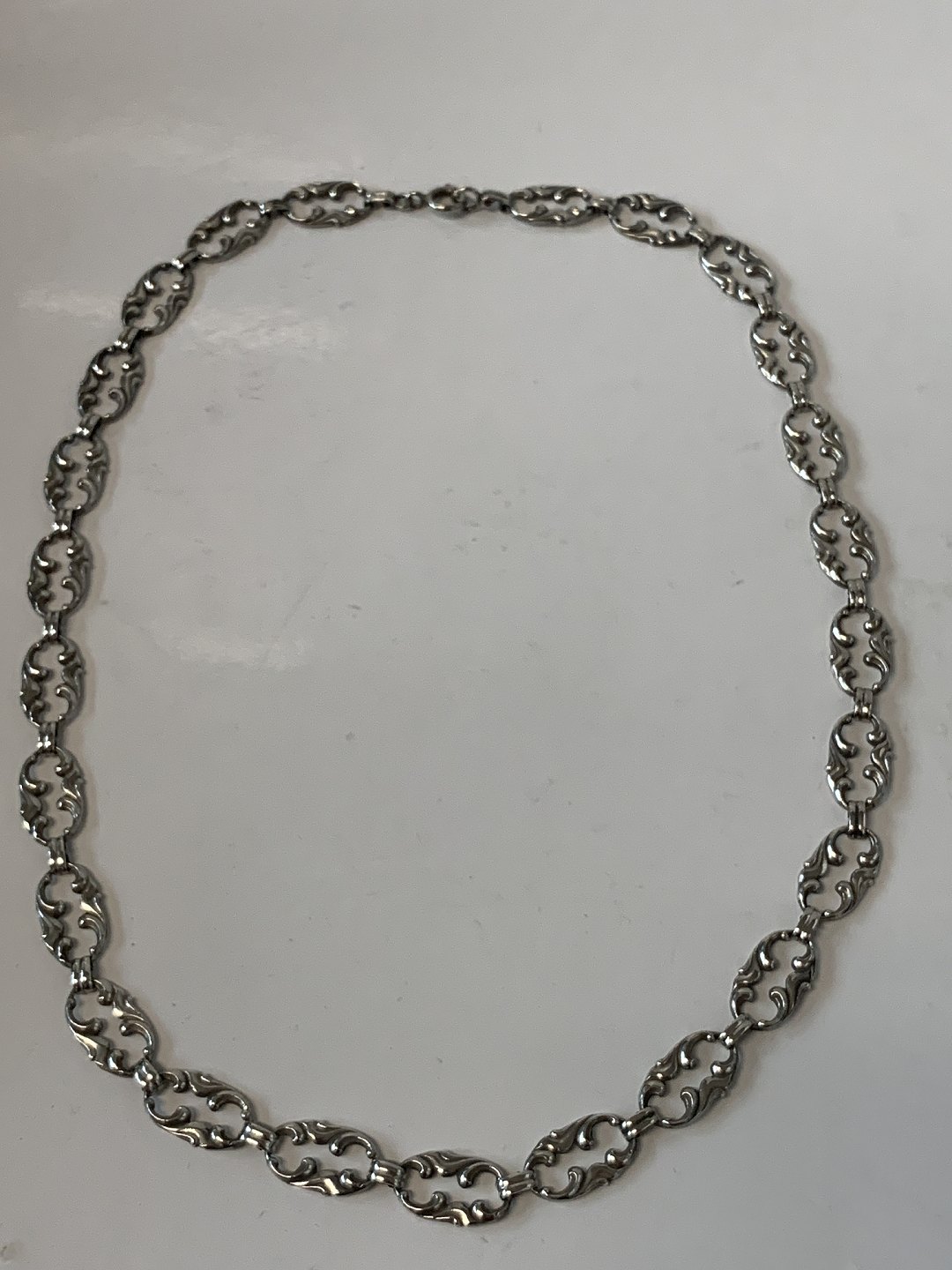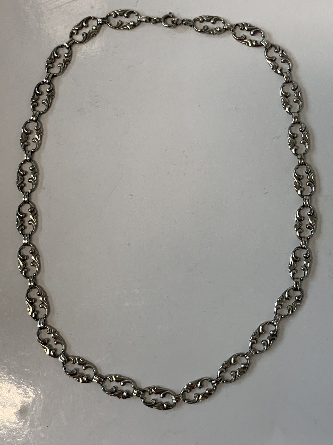 Halskæde i 830 sølv, med flotte detaljerede led.Længde 45,5 cm.