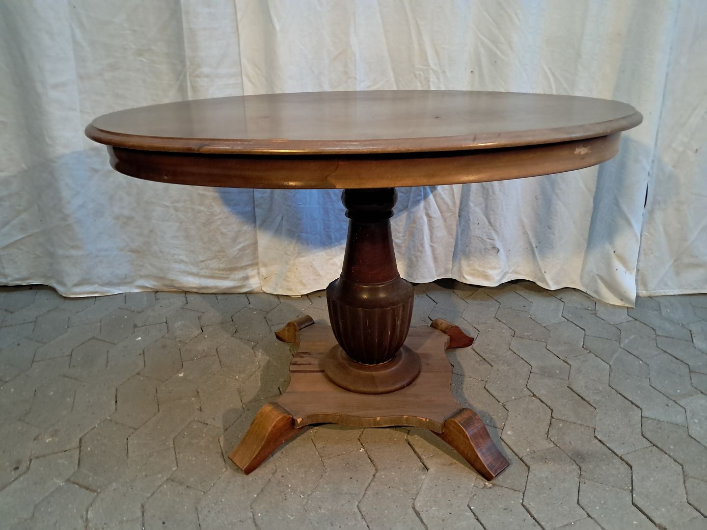 Salonbord med bordplade i massivt mahogni, fra 1910erne.Det har brugsspor og en lille revne. (se foto)