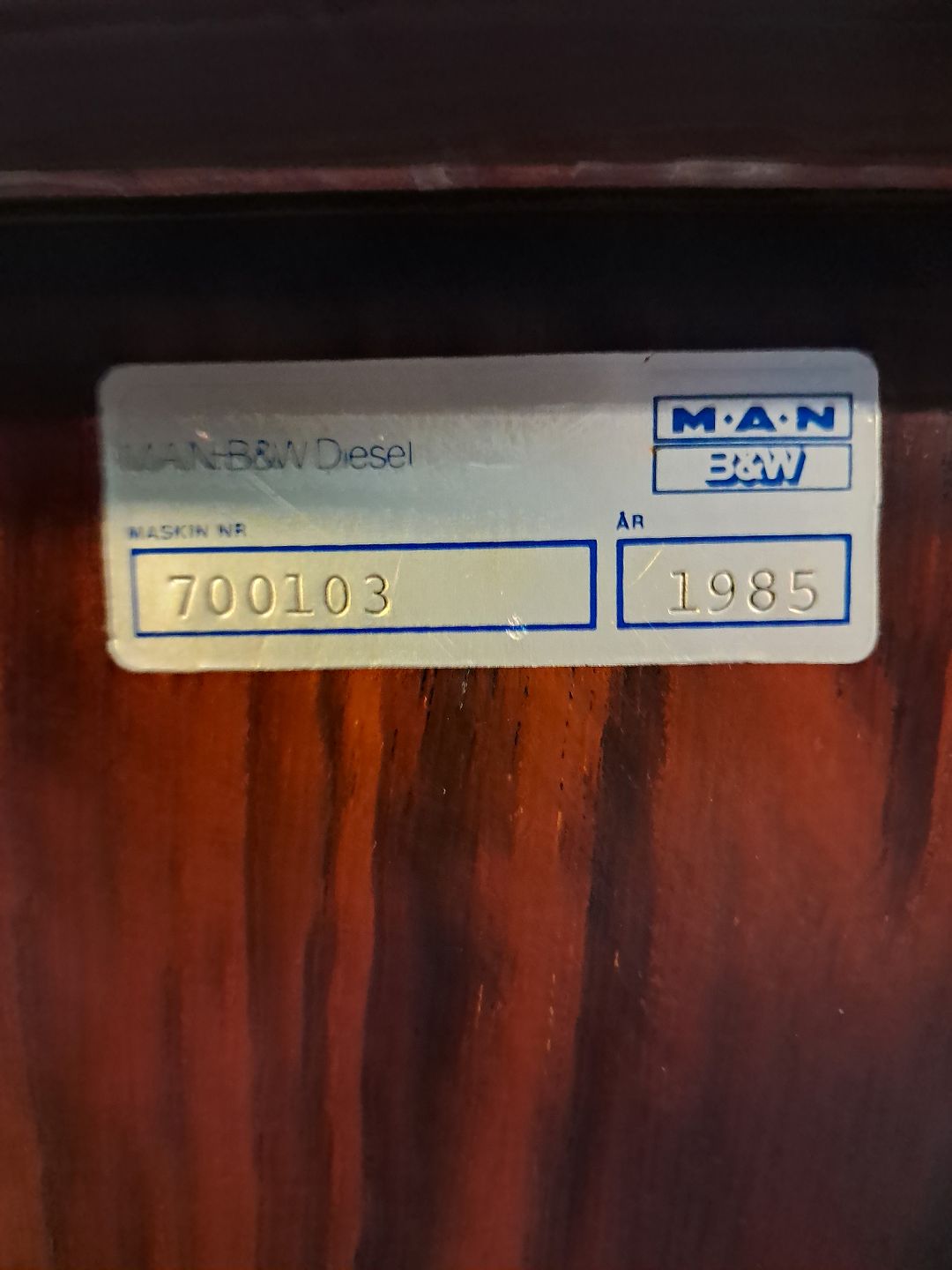 Skrivebord i fineret palisander, fra 1980erne.Det har brugsspor og bordpladen trænger til service.