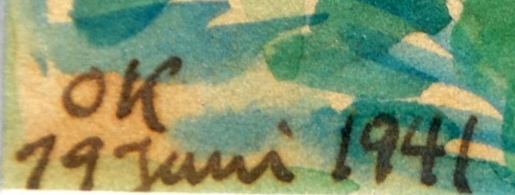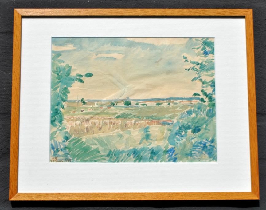 Kielberg, Ole (1911 - 1985) Dänemark: Feldlandschaft, 1941. Aquarell auf Papier. Signiert: OK 19. Juni 1941. H: 20,5 cm. B: 26,5 cm.Gerahmt: H: 30,5 cm. B: 38,5 cm.
