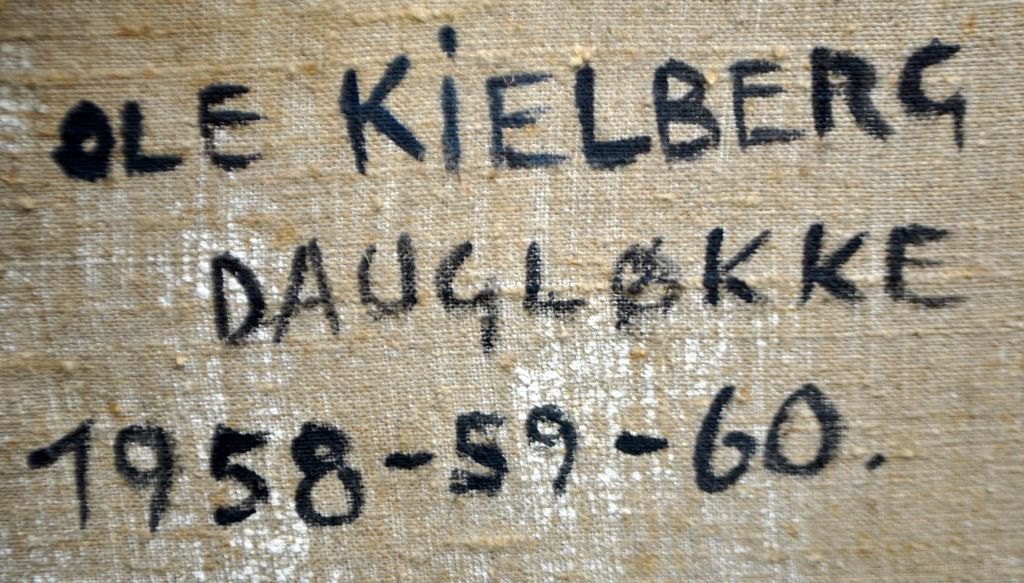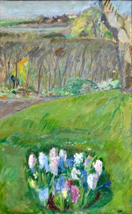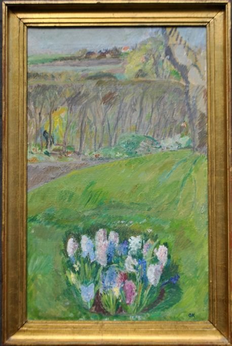 Kielberg, Ole (1911 - 1985) Dänemark: Hyazinthenbett, 1958-1960. Öl auf Leinwand. Signiert: OK und auf der Rückseite: Ole Kielberg Daugløkke 1958-59-60. H: 61 cm. B: 38 cm.Gerahmt: H: 69 cm. B: 46 cm.