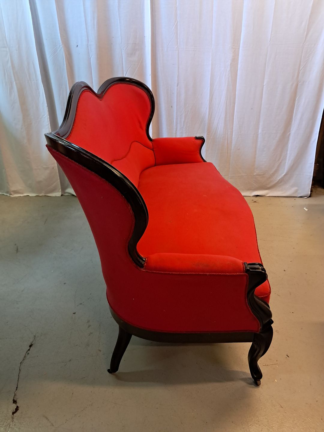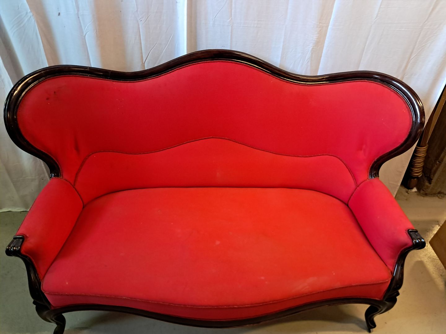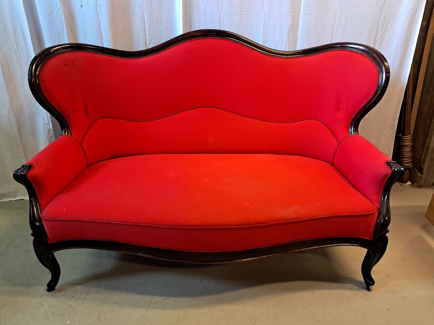 Salonsofa i mahogni, fra 1900erne.Den har brugsspor.