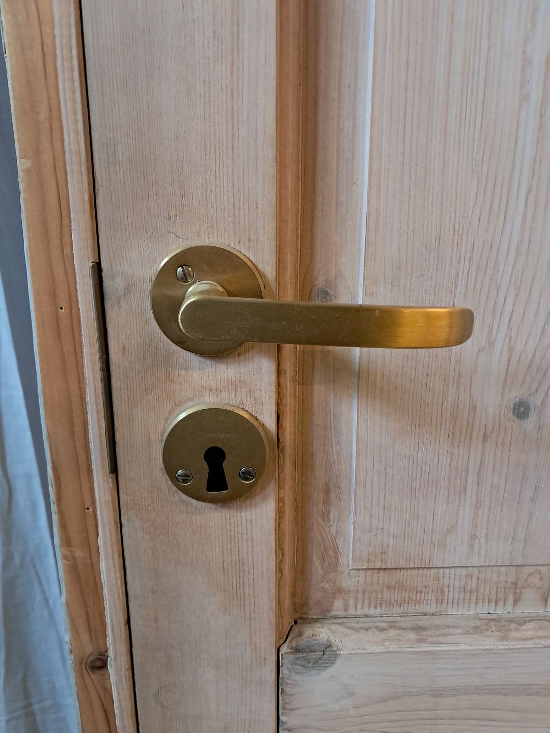 Dør i massivt fyrretræ, fra 1970erne.Der medfølger ikke nøgle.