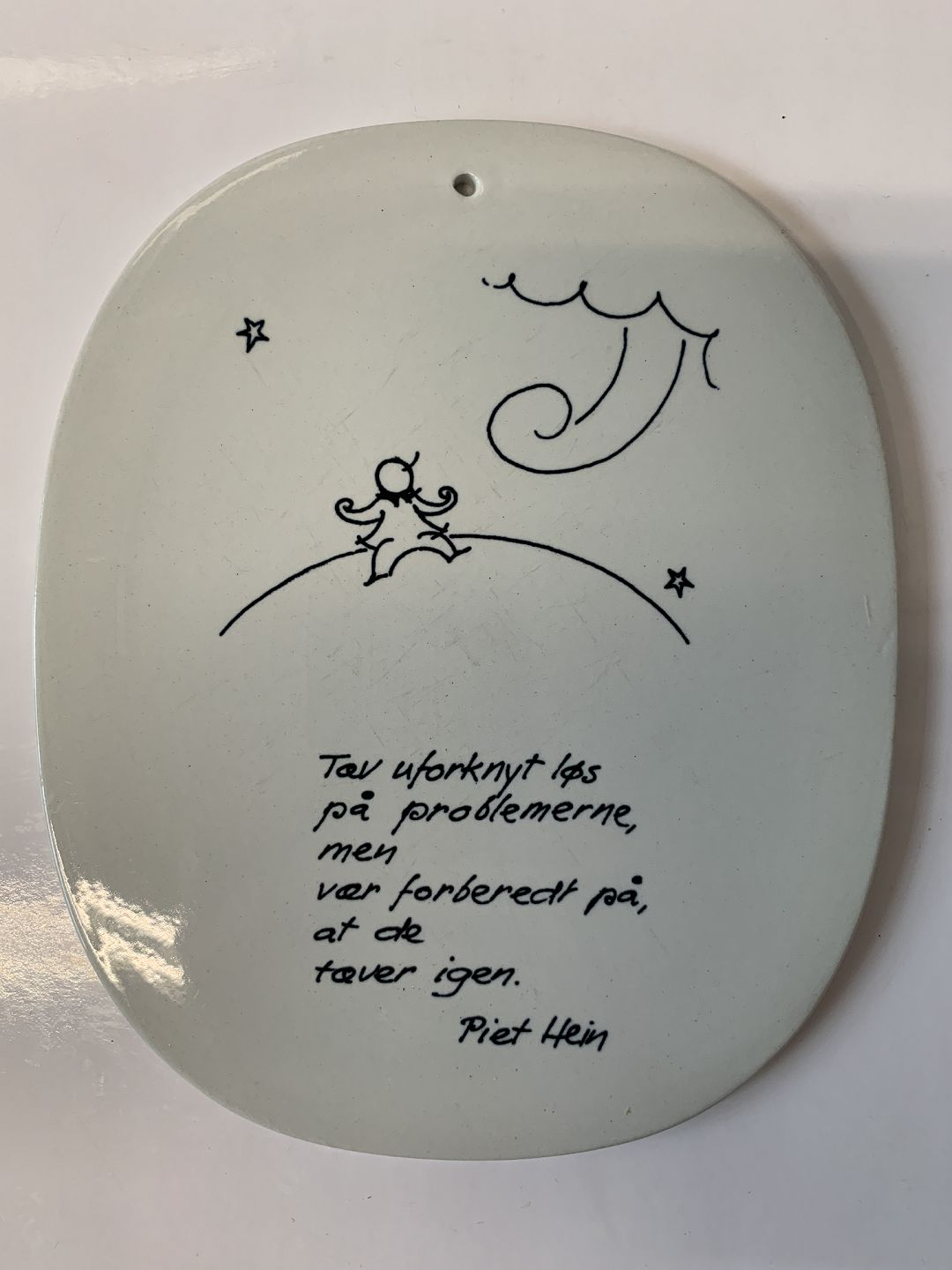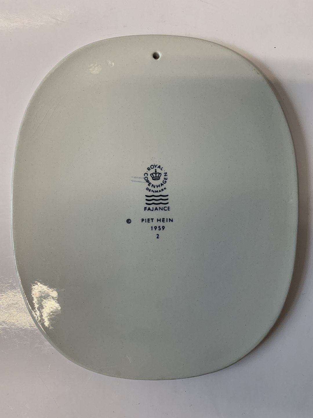 Royal Copenhagen Piet Hein platte med gruk.Tæv uforknyt løs på problemerne, men vær forberedt på, at de tæver igen.