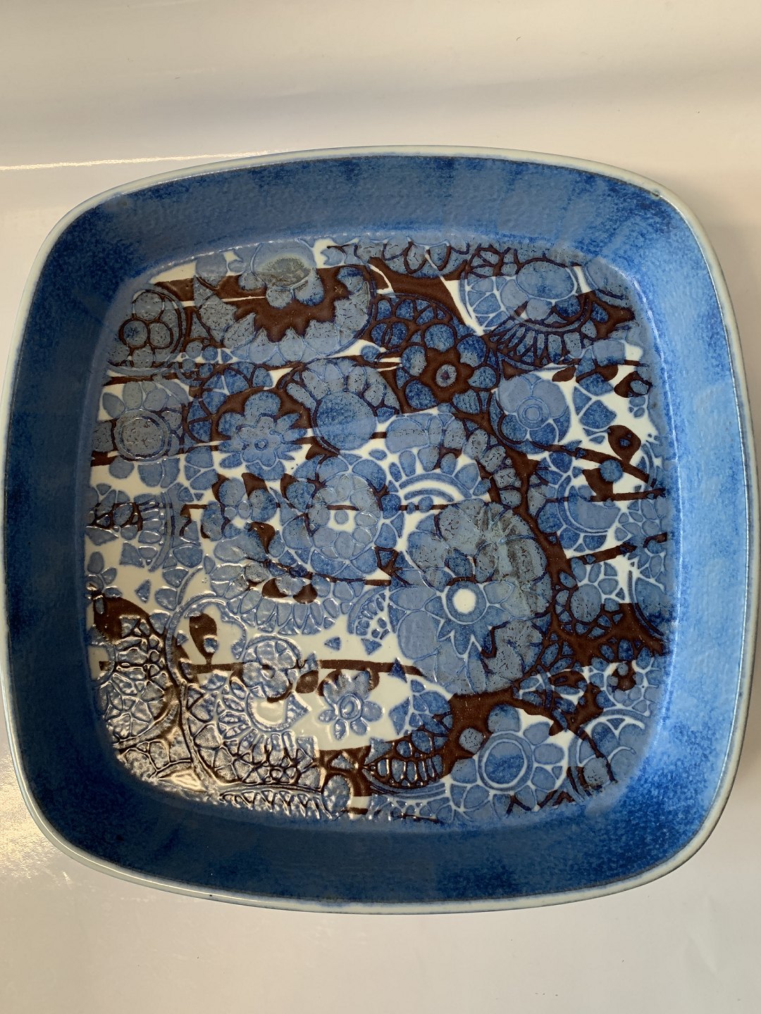 Stort blåt fad