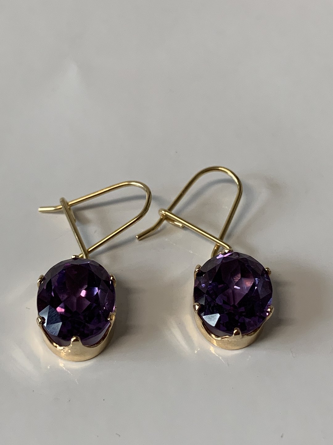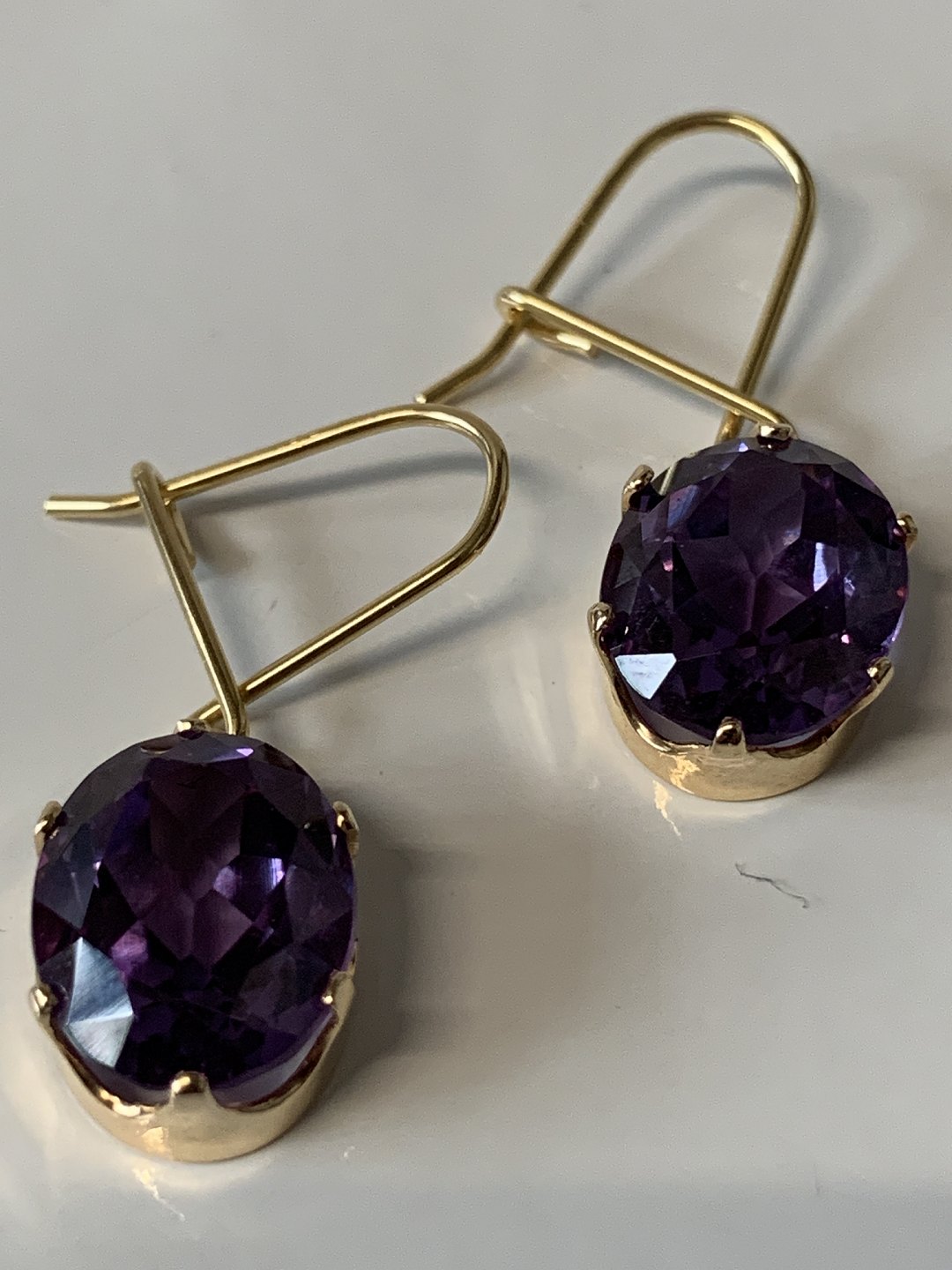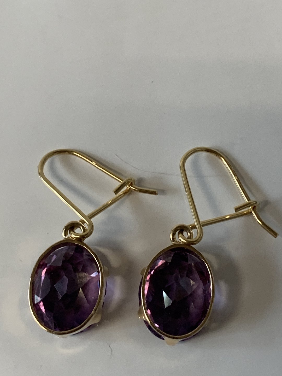 14 karat guld øreringe med lilla sten.Stemplet 585.