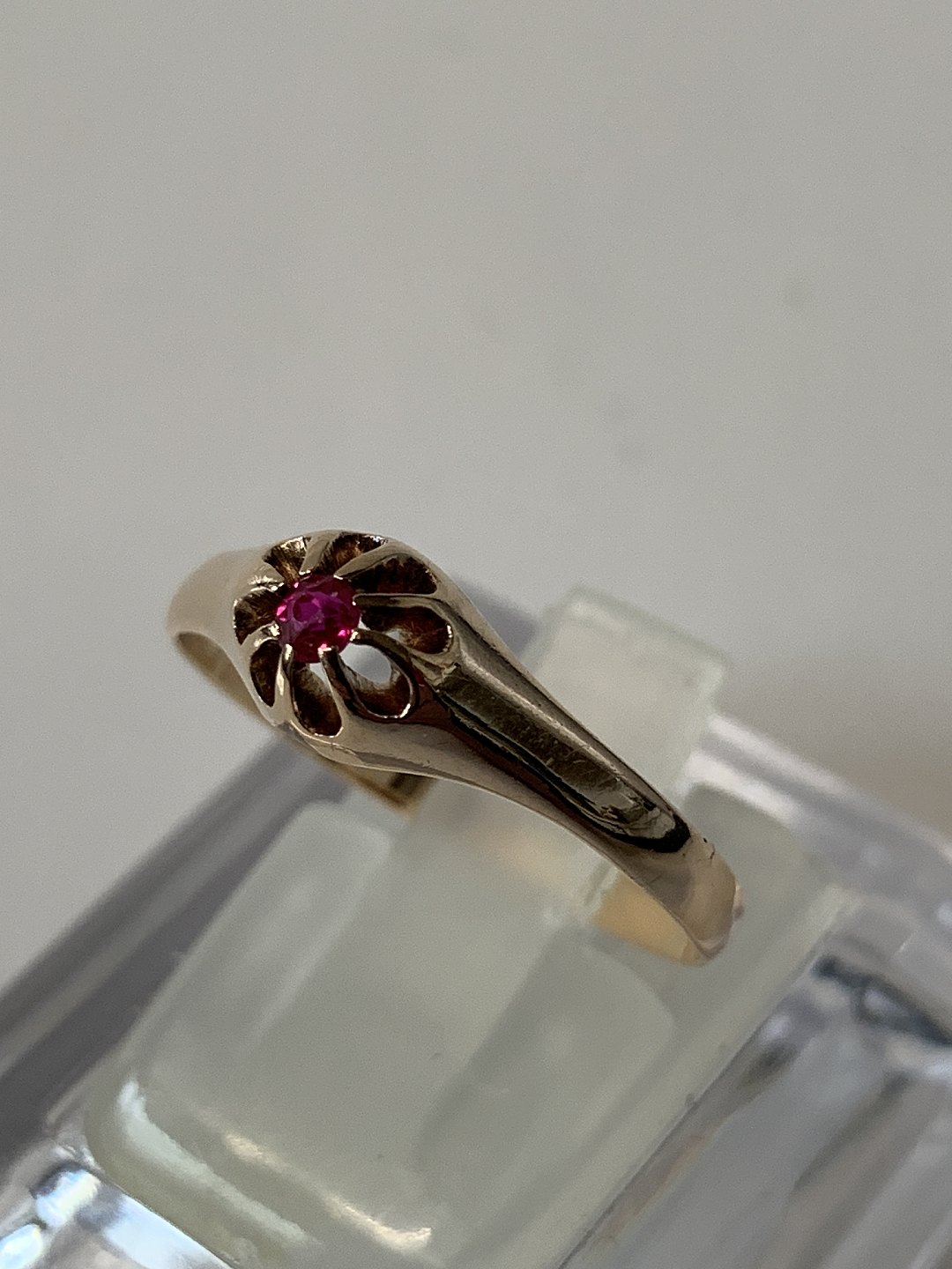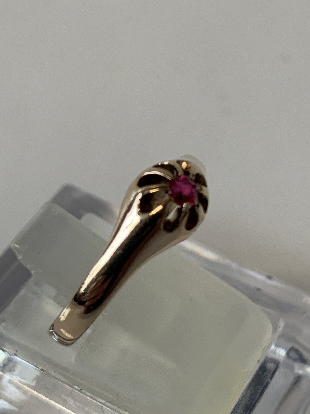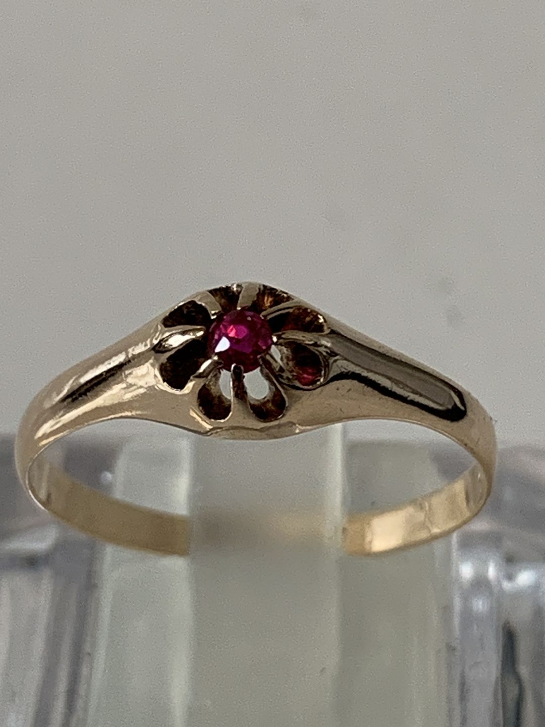 Damering i 14 karat guld, med rød sten.Størrelse 58.
