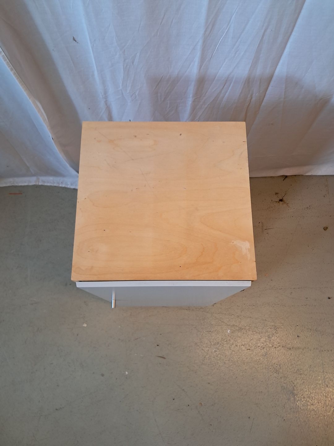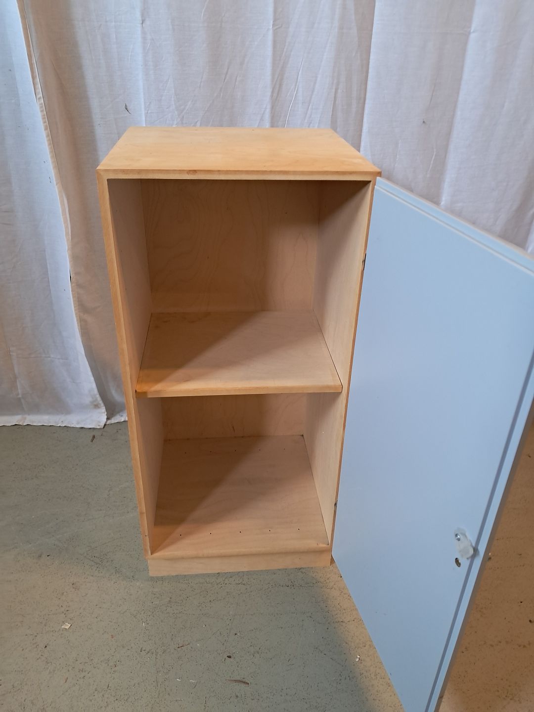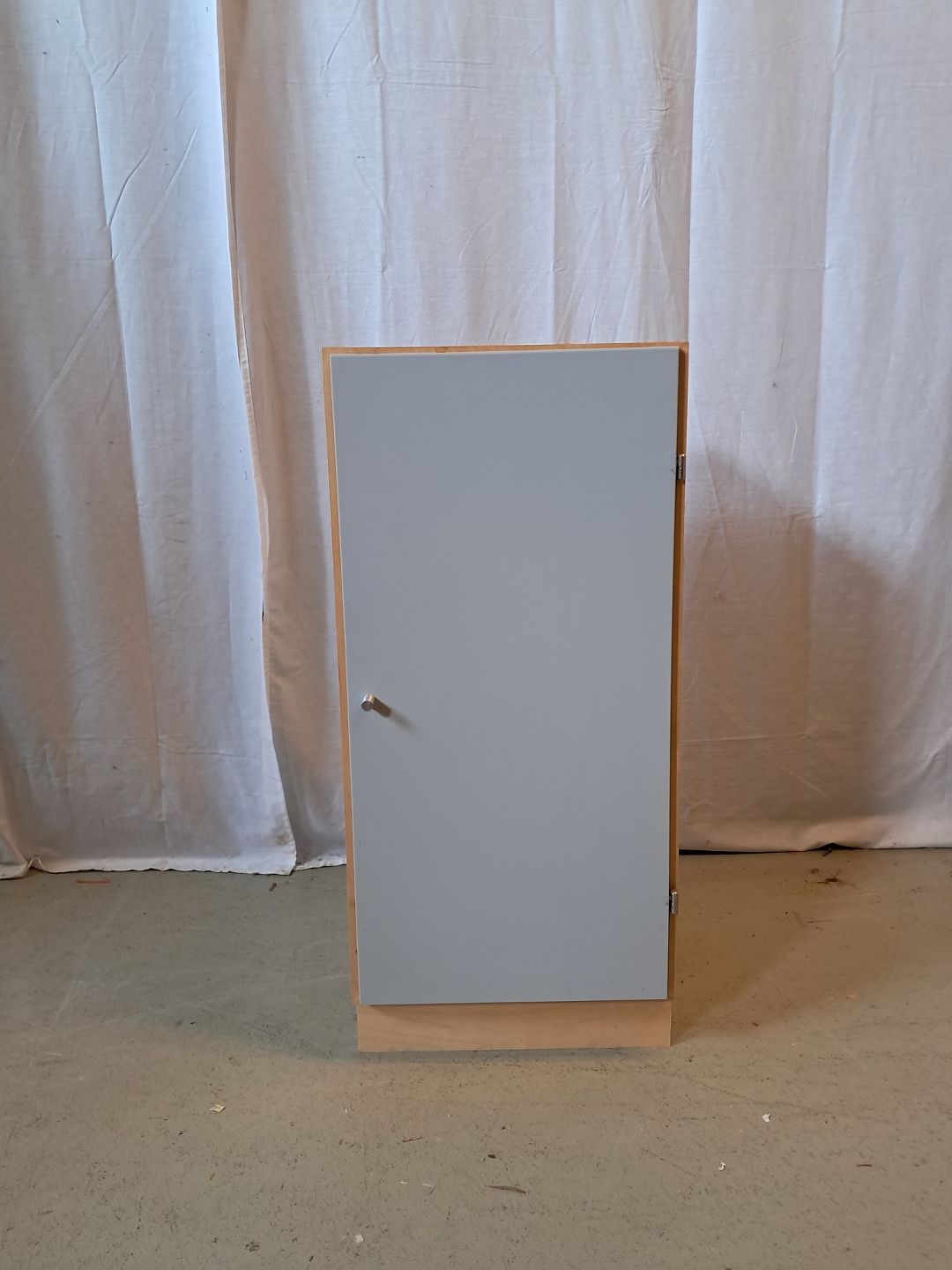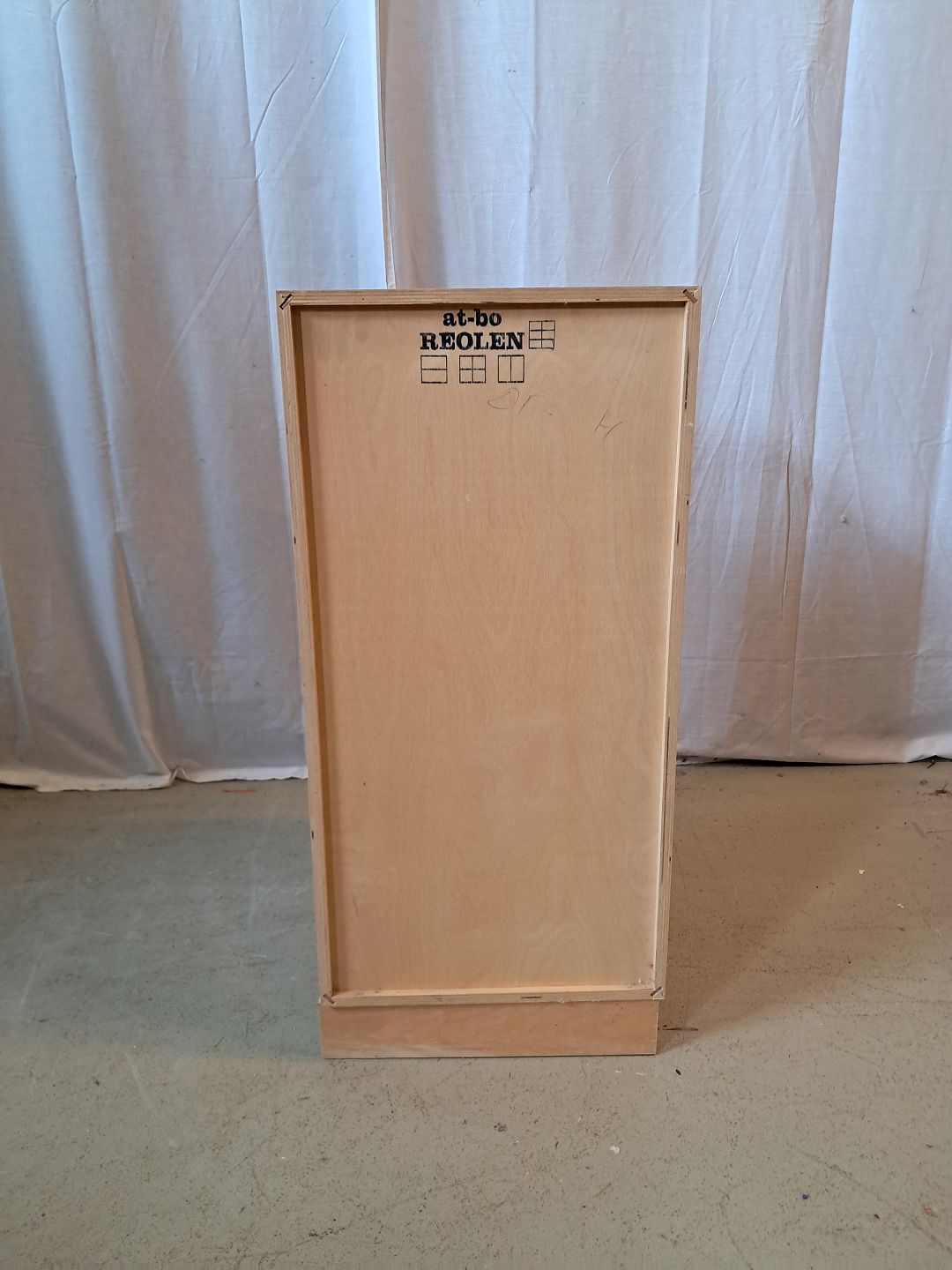 At-bo reolkasse i krydsfiner med malet låge, fra 2000erne.Den har brugsspor.