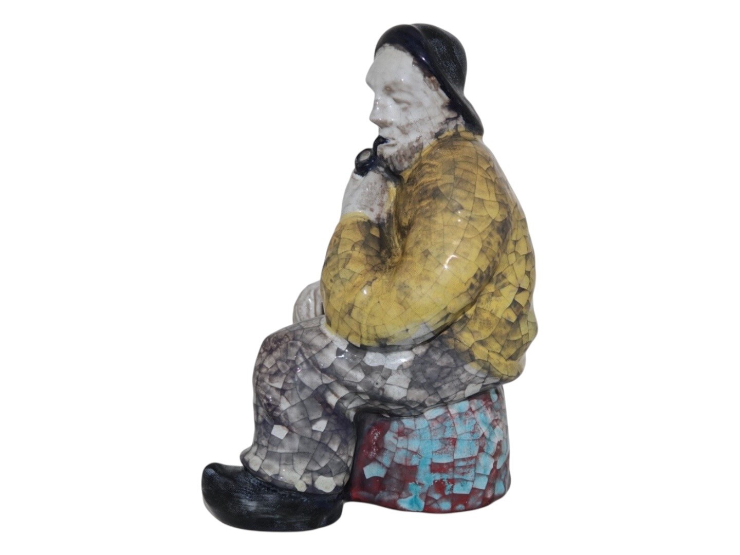 Michael Andersen keramik fra Bornholm, figur af fisker i gul jakke.Dekorationsnummer 4852/2.