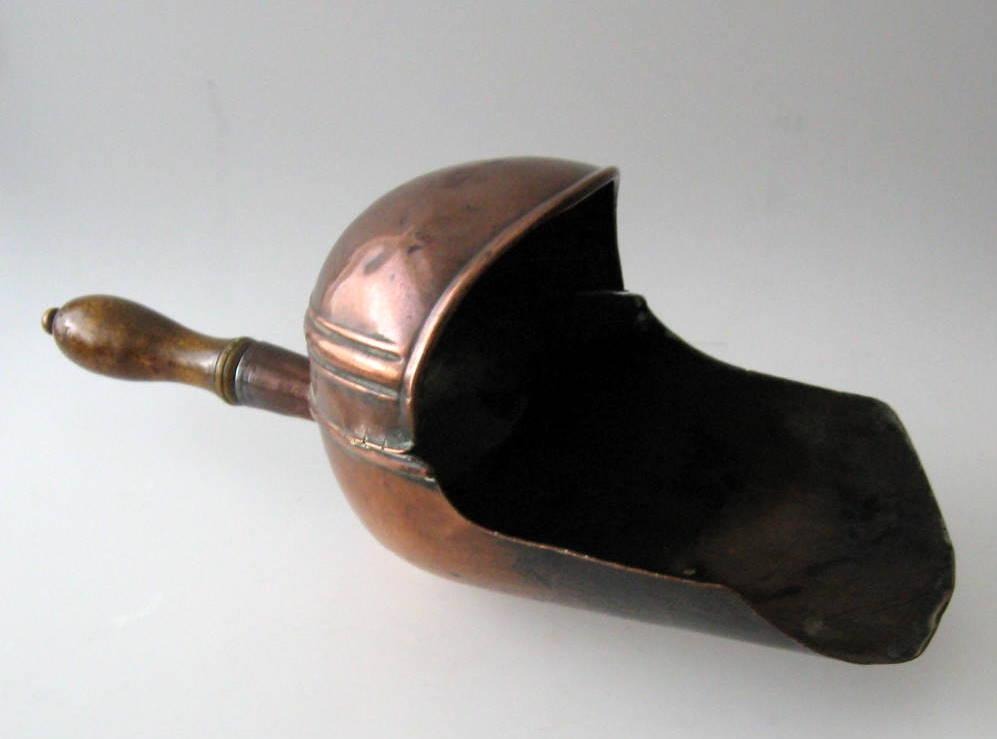 Kornmass-Gerät aus Kupfer. 19. Jh. Dänemark. Stiel aus gedrehtem Buchenholz. L.: 39 cm.Bestellnummer: 5538