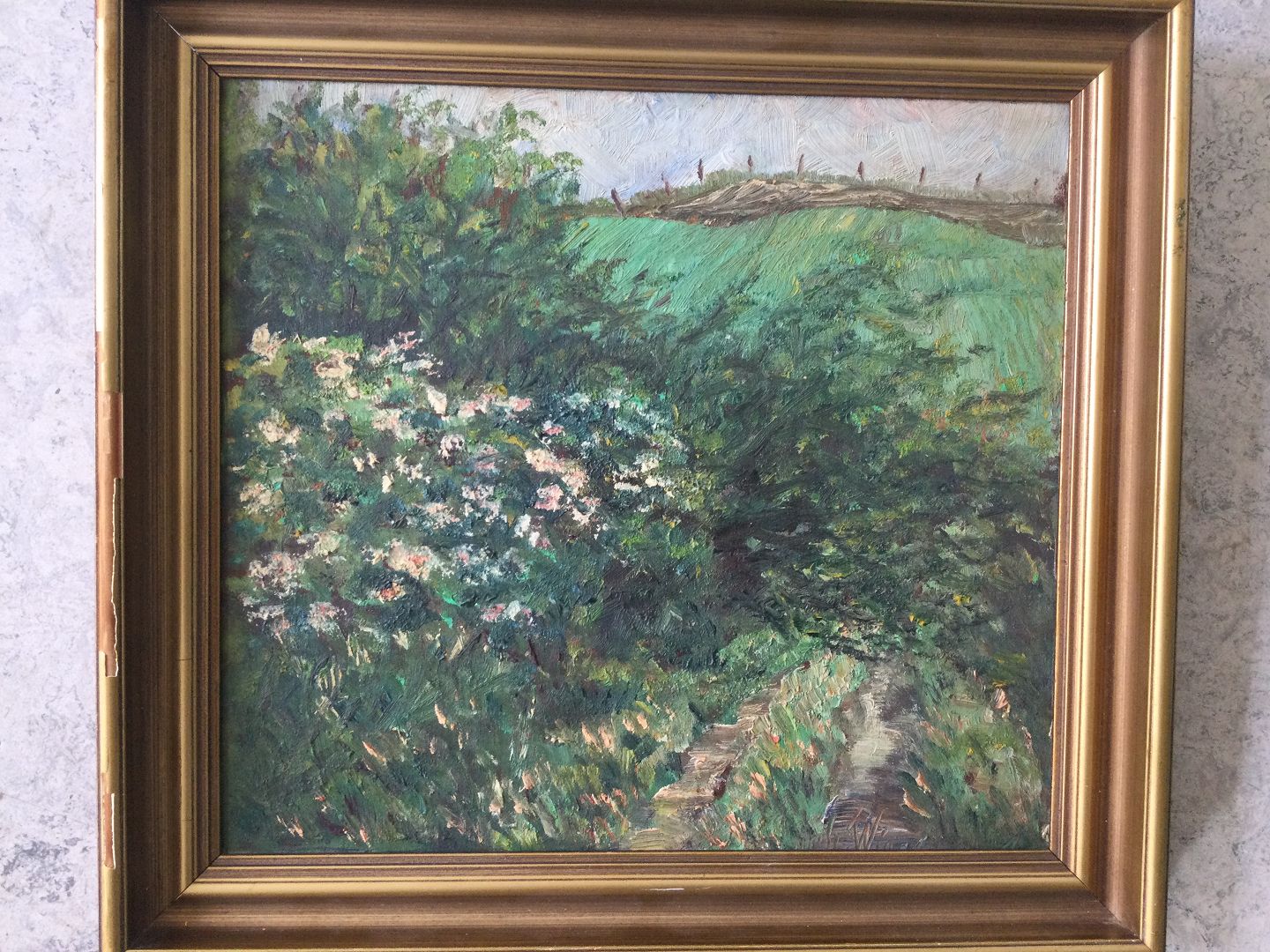 Maleri af Richard Wissntal - Landskab med blomstrende busk.