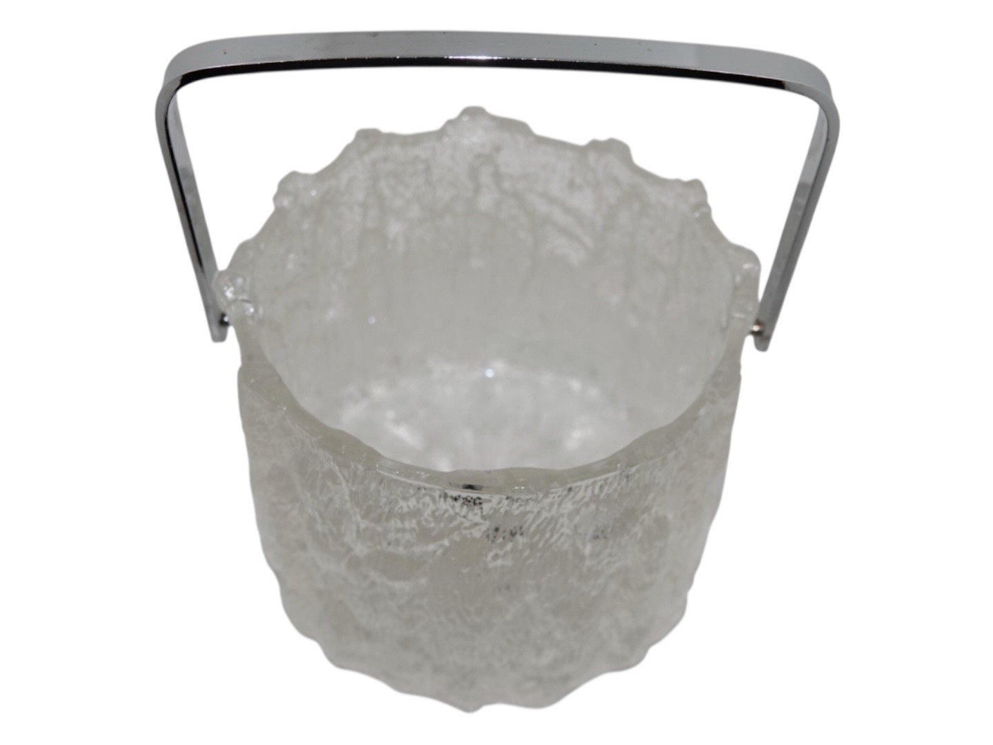 Iittala Finland, isspand i kraftigt glas med stålhank.Designet af Tapio Wirkkala i 1970'erne.
