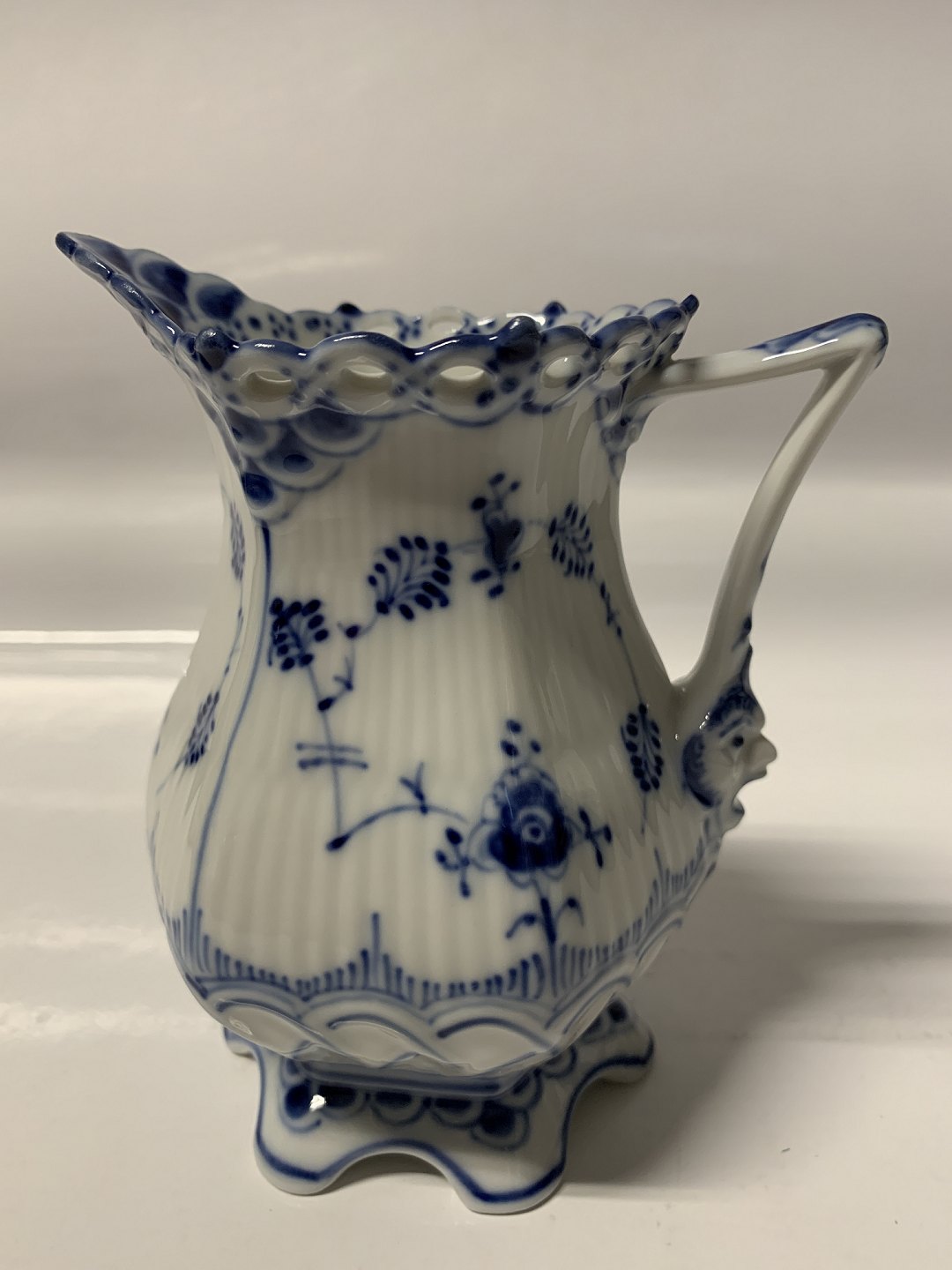 Royal Copenhagen Musselmalet Helblonde, ekstra stor flødekande.Af fabriksmærket ses det, at denne er produceret i 1963.