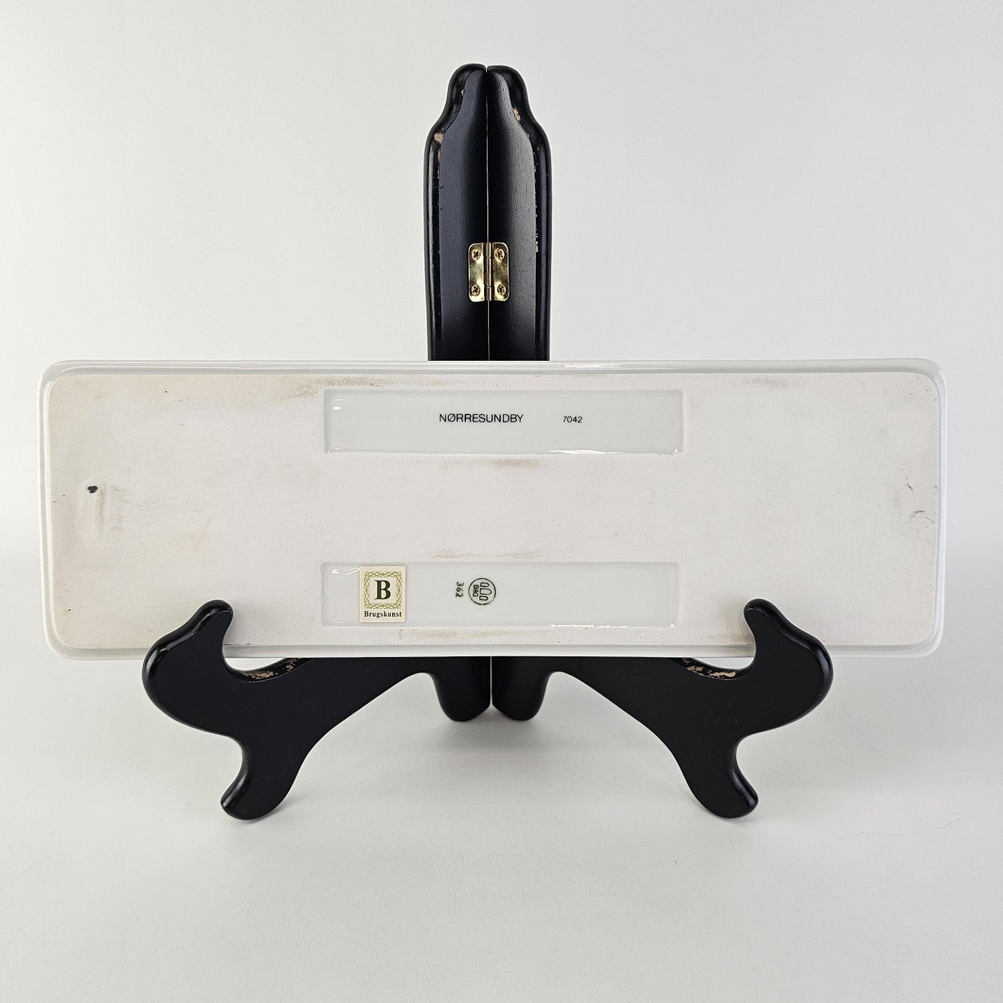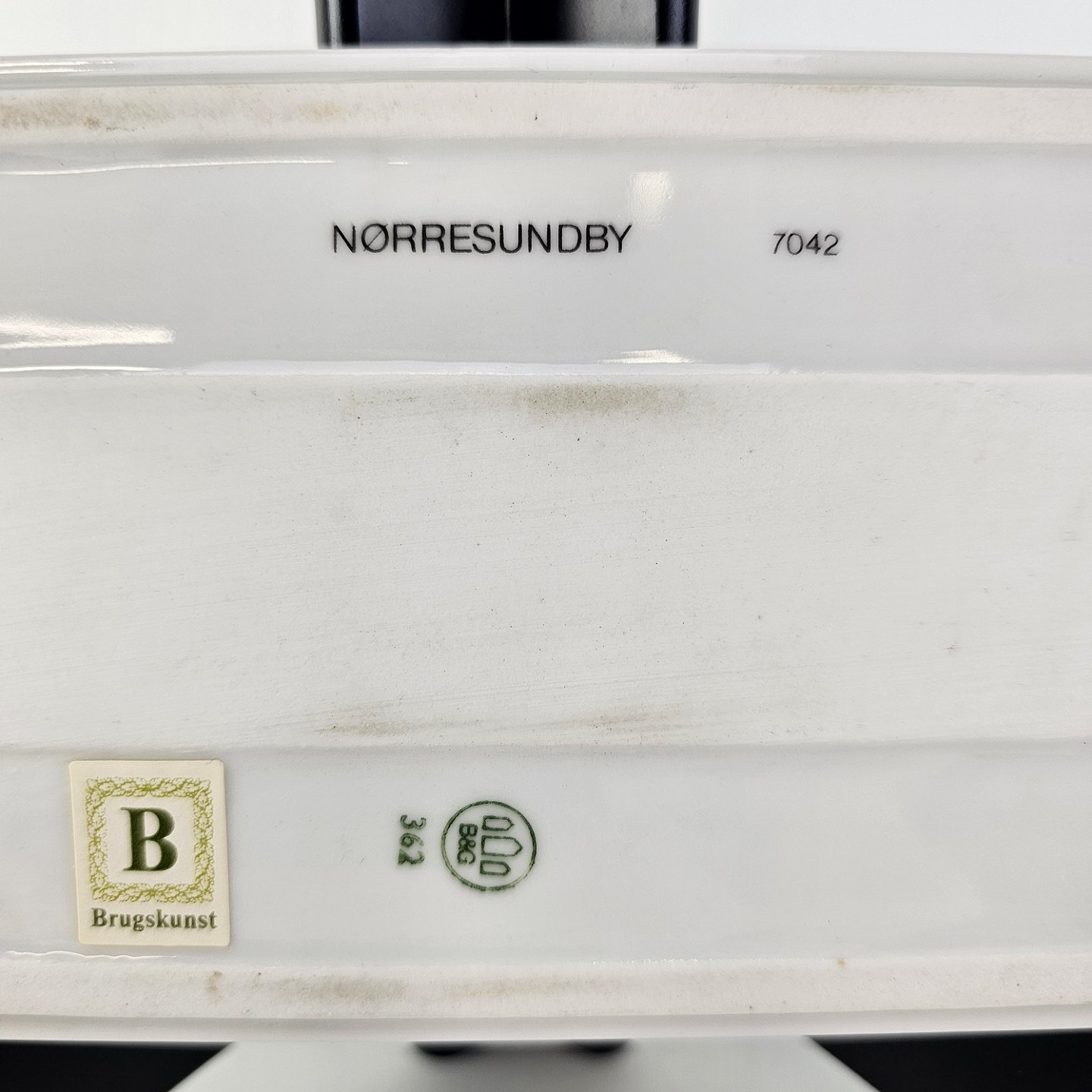 Aflangt fad i hvidt porcelæn med bymotivNørresundby 7042