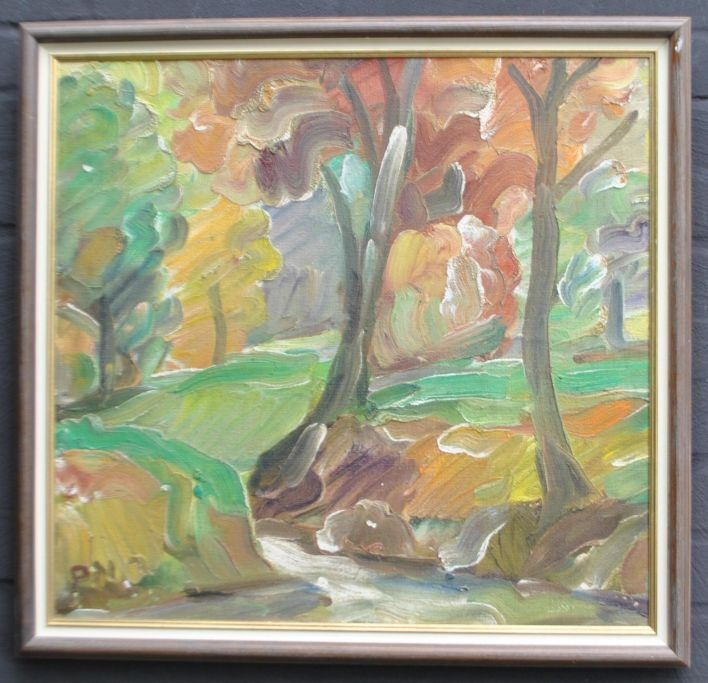 Nicolaisen, Peter (1894 - 1989) Dänemark: Ein Bach in einem Park. Öl auf Leinwand. Signiert. 51 x 57 cm.Gerahmt: 63 x 60 cm.