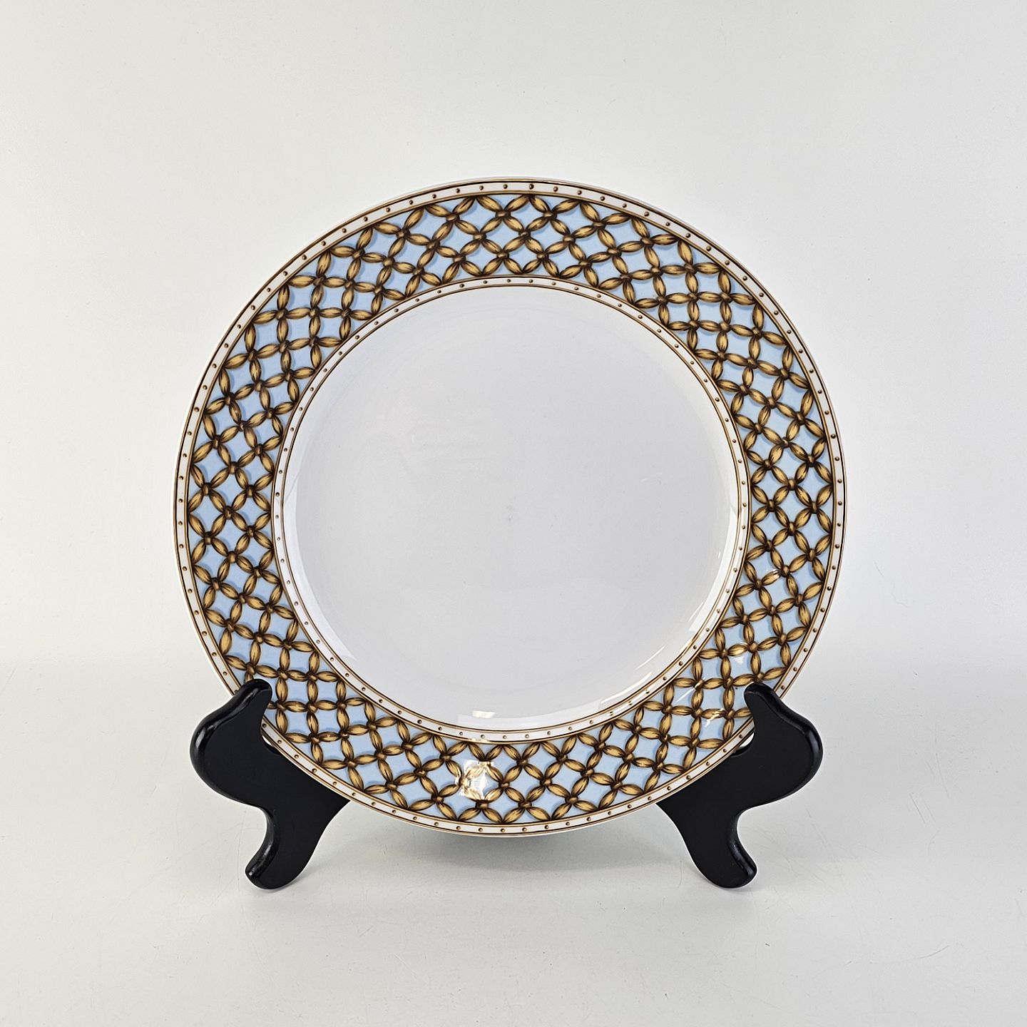 Liselund er hvidt porcelæn dekoreret i lyseblå eller mørkeblå nuancer med fletmønster