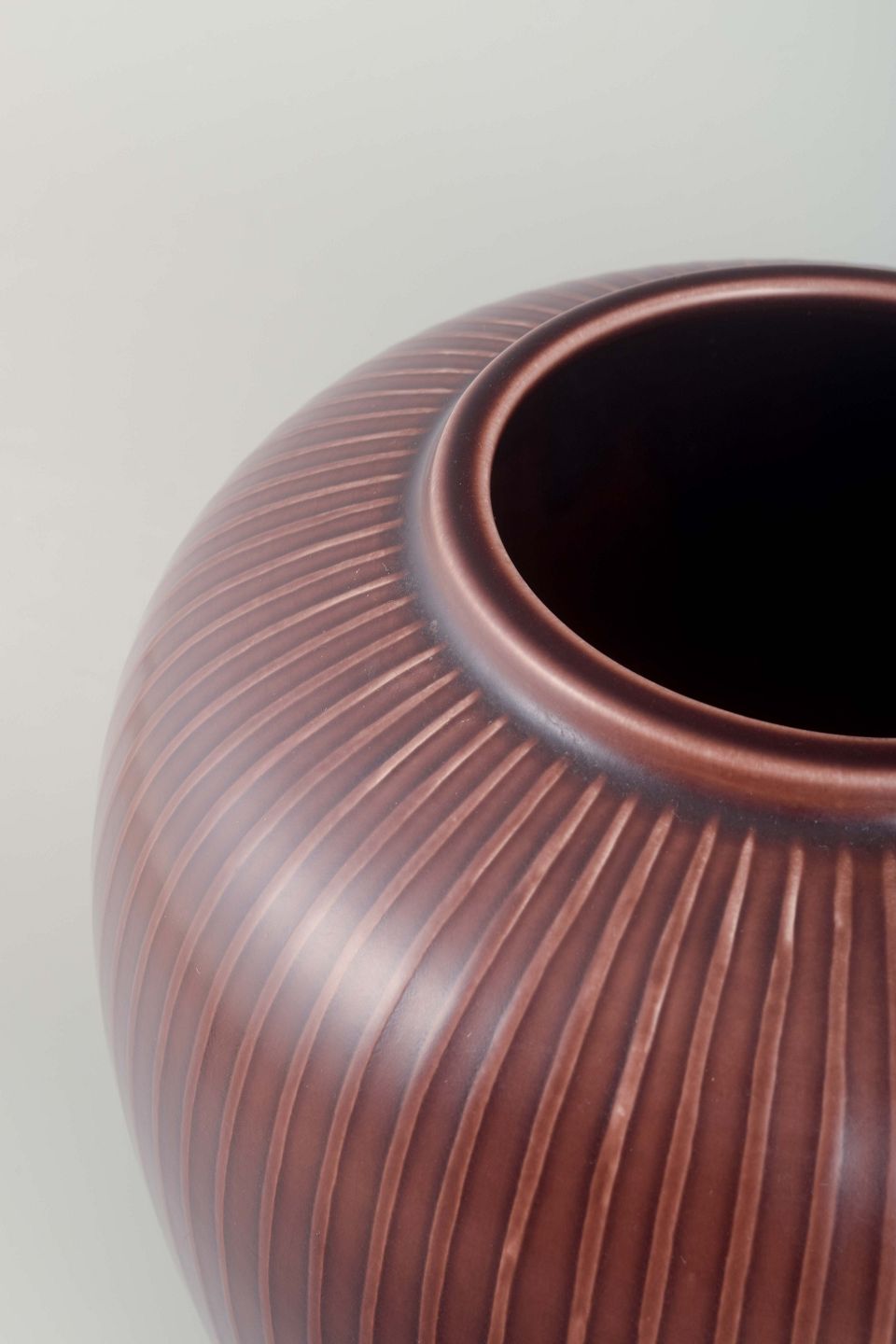 Marselis-serien fra Aluminia er kendetegnet ved en enkel, tidløs æstetik, hvor den burgundy glasur og reliefarbejdet fremhæver det håndværksmæssige udtryk. Serien repræsenterer den skandinaviske keramiske tradition med vægt på både funktionalitet og kunstnerisk form.