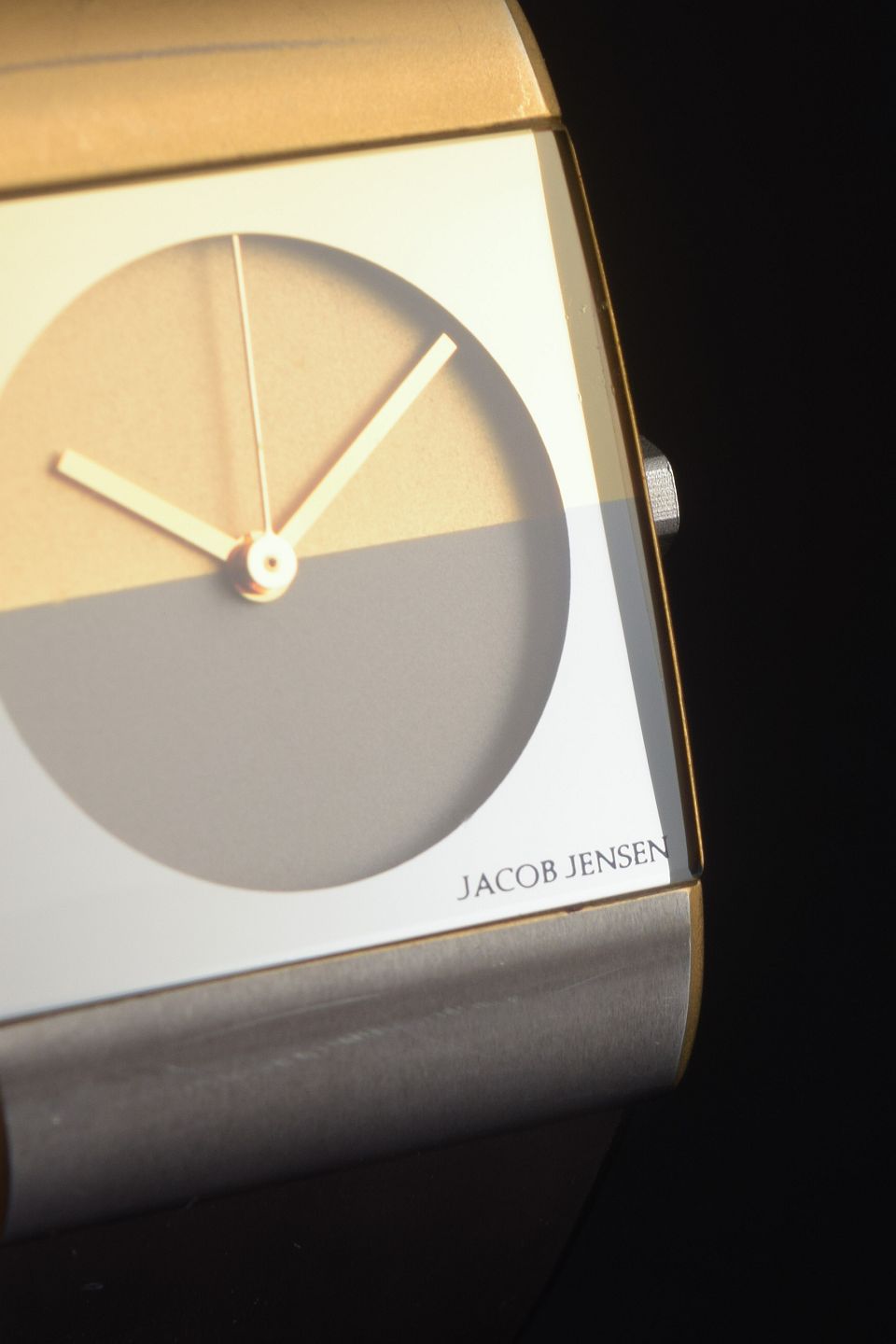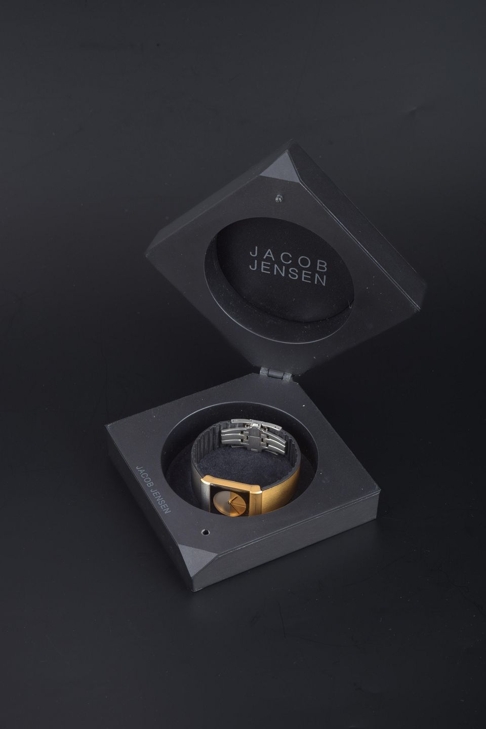 Jacob Jensen (1926–2015) var en af Danmarks mest betydningsfulde industridesignere, kendt for sit stramme og funktionelle formsprog, hvor minimalisme og æstetisk klarhed var i centrum. Hans designs for Bang & Olufsen i 1960’erne og 70’erne fik international betydning og definerede en ny æra inden for skandinavisk design. Hans ure, udviklet fra 1985 og frem, blev prisbelønnet for deres tidløse og elegante udtryk og anses i dag som samlerobjekter.