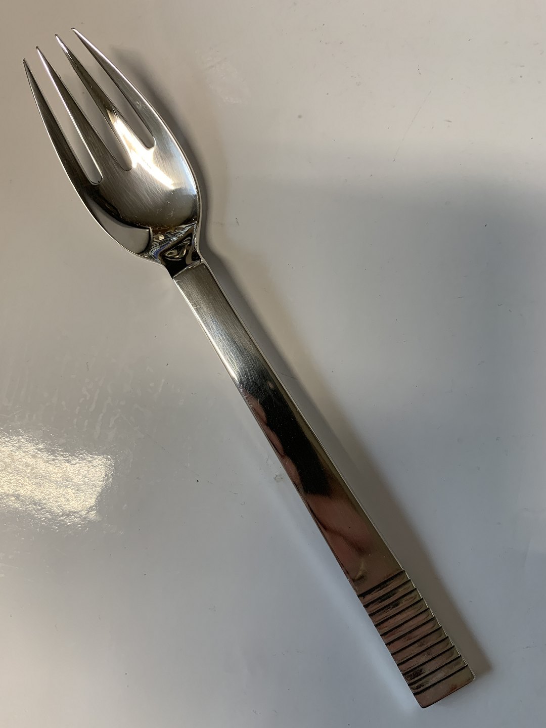 Parallel / Relief Georg Jensen, Middagsgaffel sølv.Længde 18,1 cm.