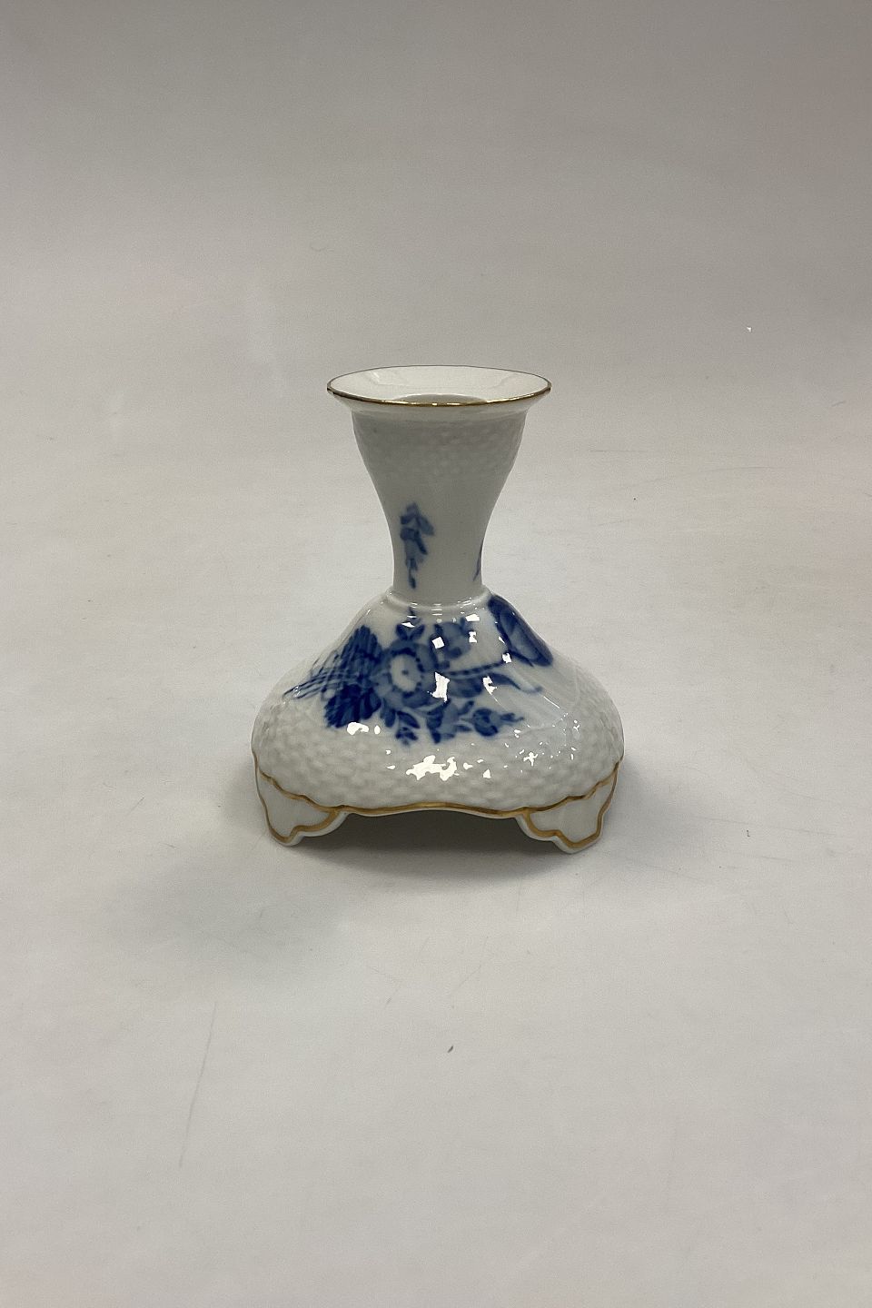 Royal Copenhagen Blå Blomst Svejfet med Guld Lysestage No. 1711. Måler 10,5 cm / 4,13 in.Lager: 1