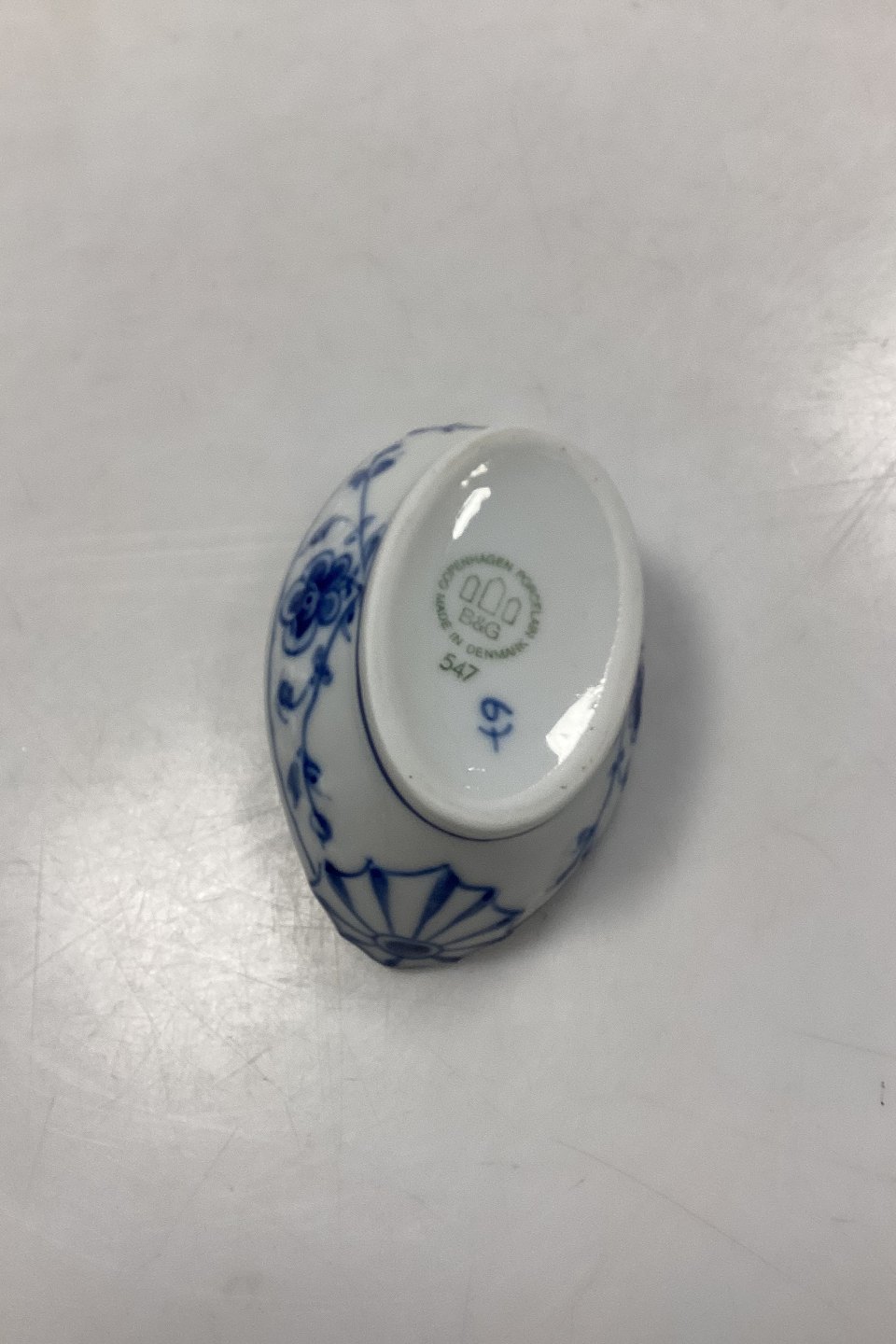 Bing og Grøndahl Sommerfugl Ovalt Saltkar No. 547 eller 55. Måler 3,5 cm x 8,5 cm / 1,37 in. x 3,34 in.Lager: 3