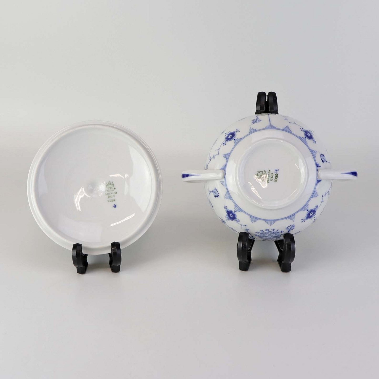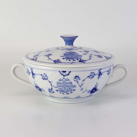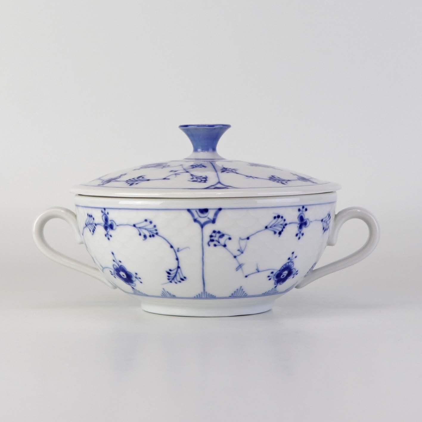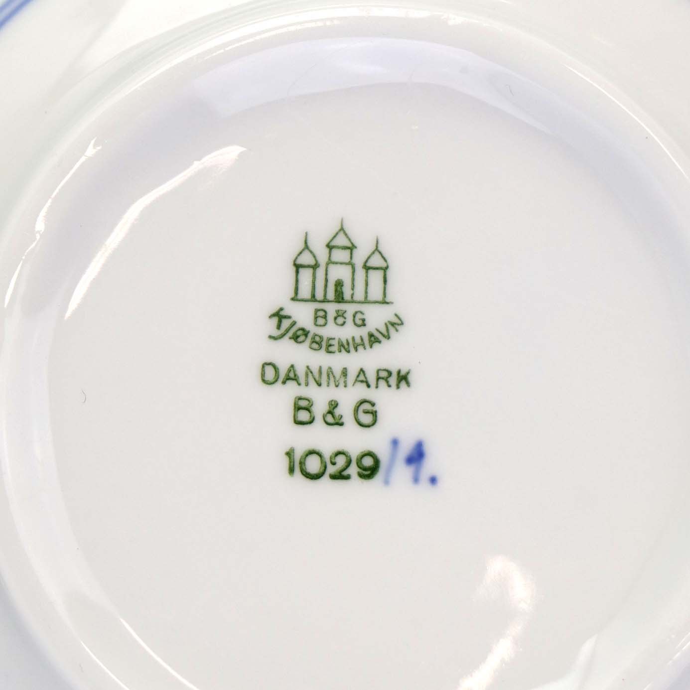 Boullionkop med låg i hotelporcelæn med motiv fra restaurant Kilden i Aalborg fra stellet Blåmalet. Nr. 1029Producent Bing & Grøndahl
