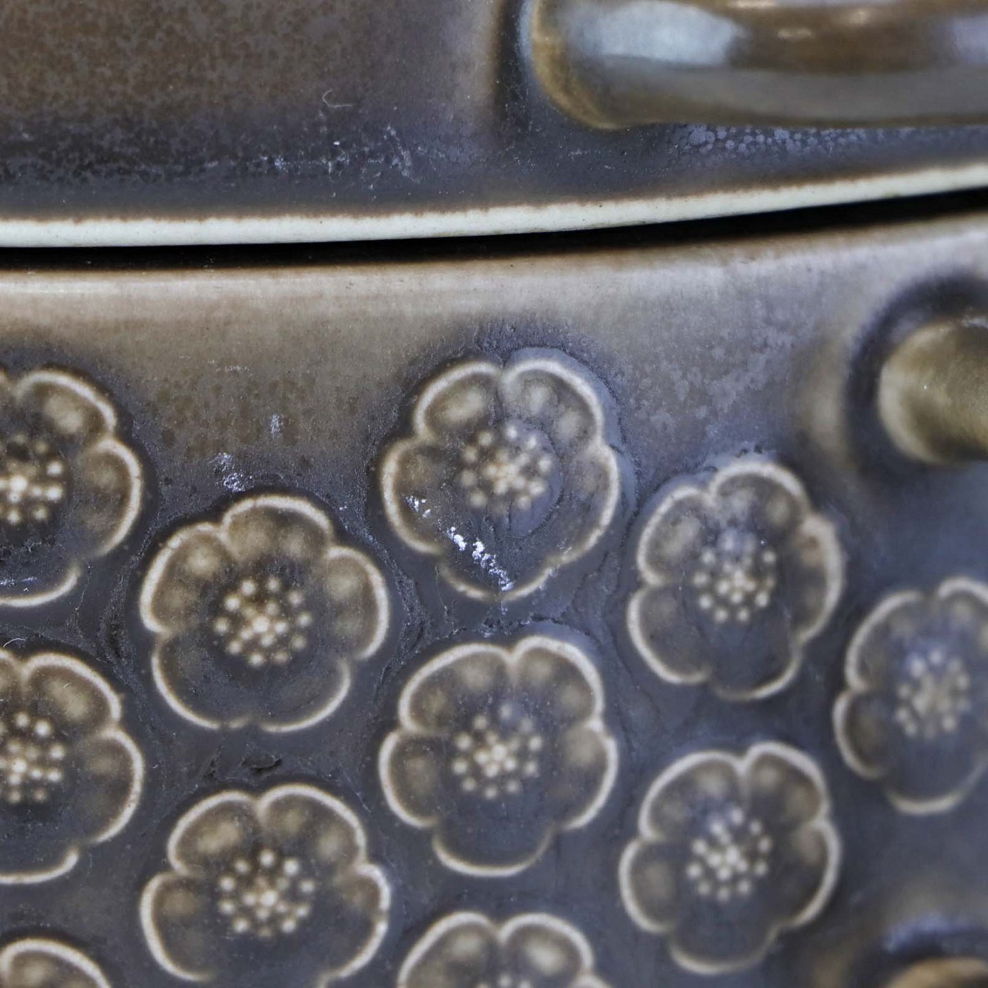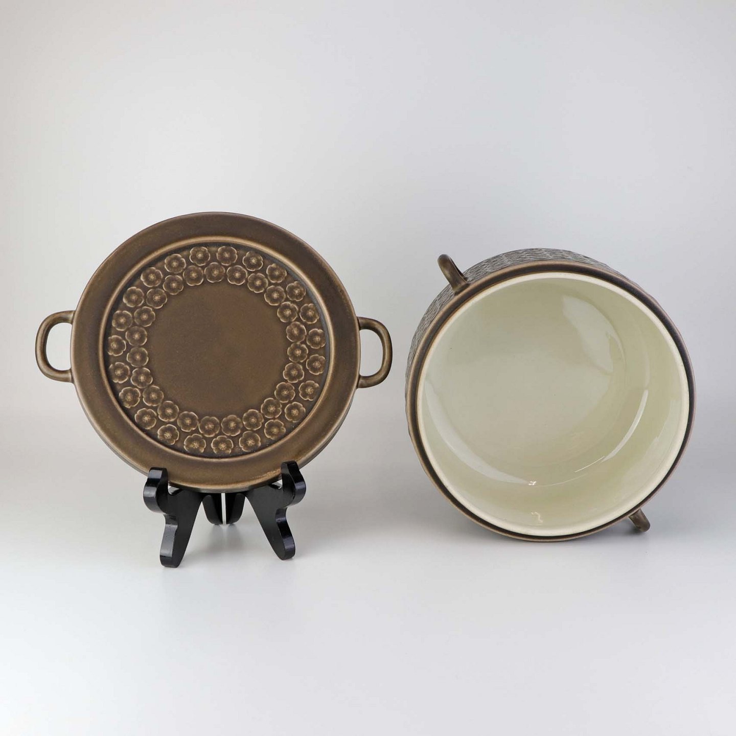 Stel i brun stentøj med blomster motiver