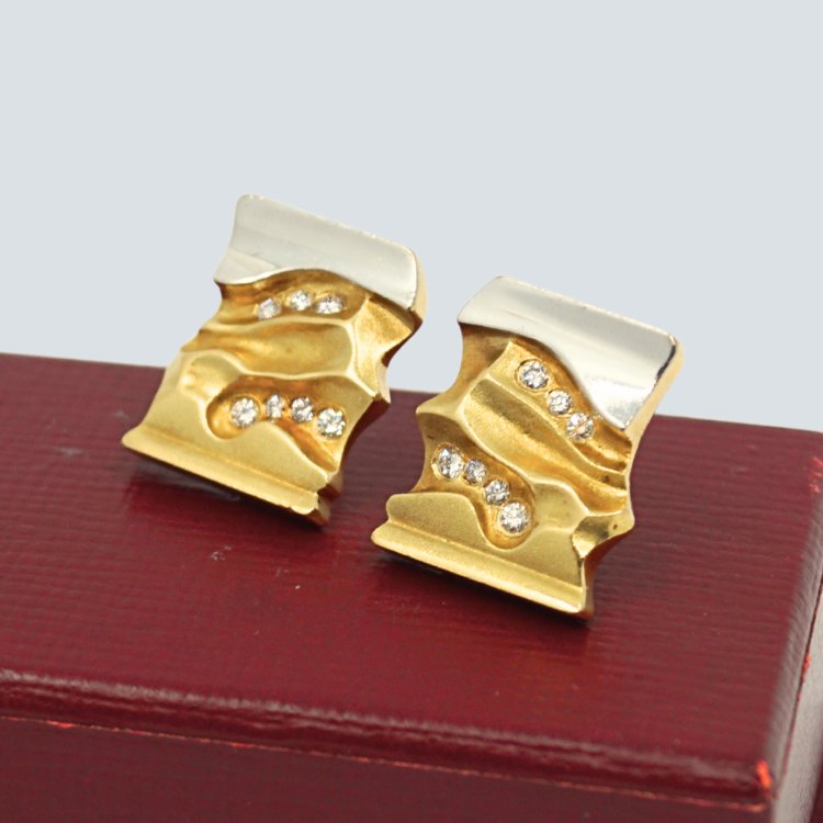 Brian Thomsen; Par øreclips i 18 kt. guld. prydet med diamanter. Mål 1,9 cm x 1,5 cm.