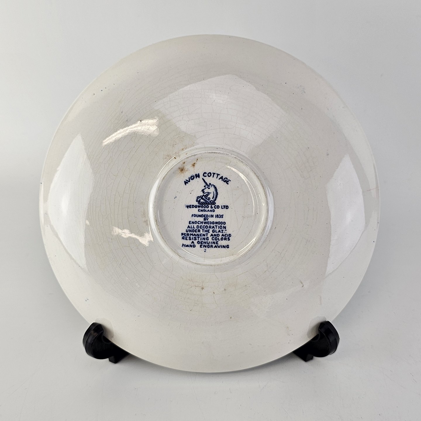 Blå kop og underkop i engelsk fajance fra stellet Avon CottageProduceret af Wedgwood & Co. LTD, England