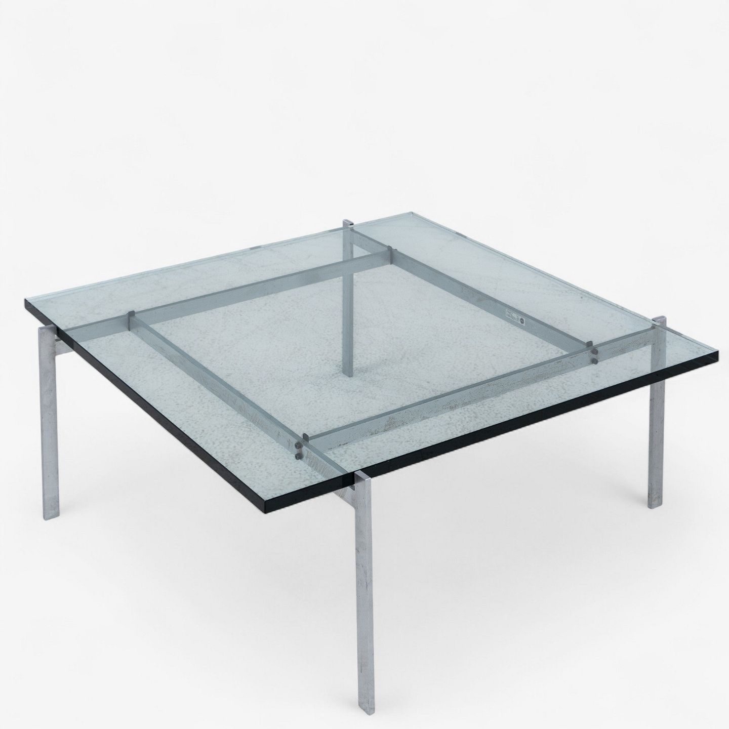 Poul Kjærholm / Fritz Hansen.PK 61 - Sofabord med glasplade på stel af stål. Mærket fra producent.