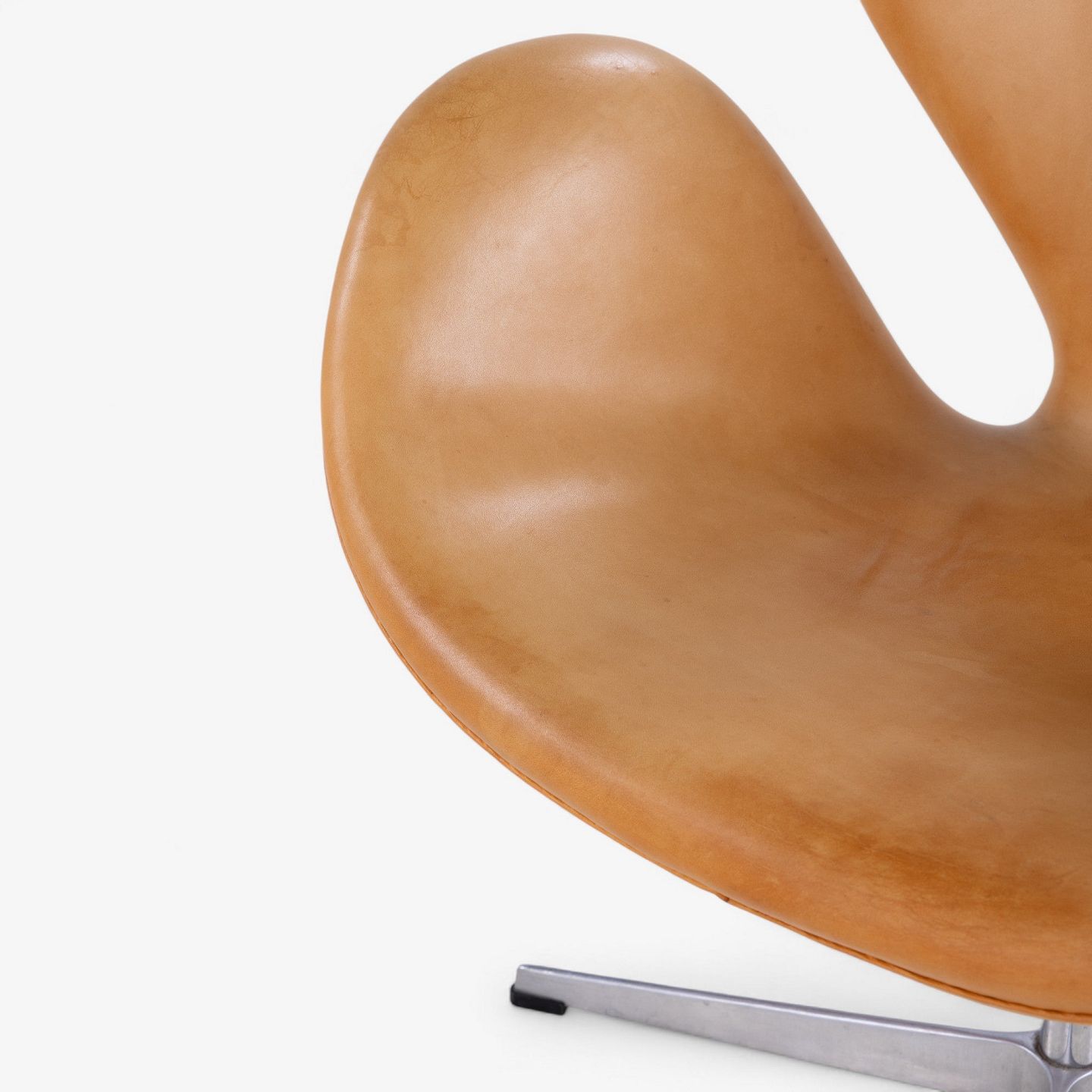 Arne Jacobsen / Fritz Hansen.AJ 3320 - 'Svanen'-lænestol i patineret naturlæder på ny fod. Stemplet fra producenten.