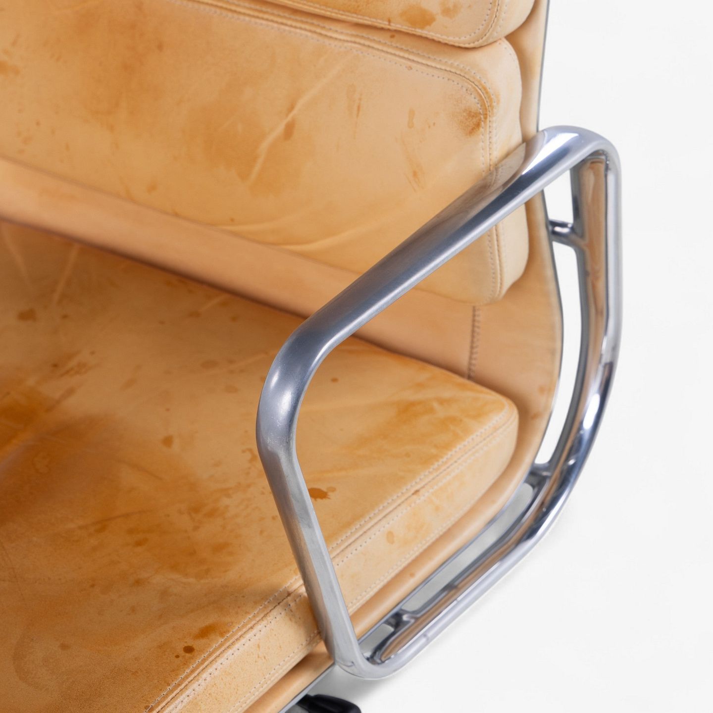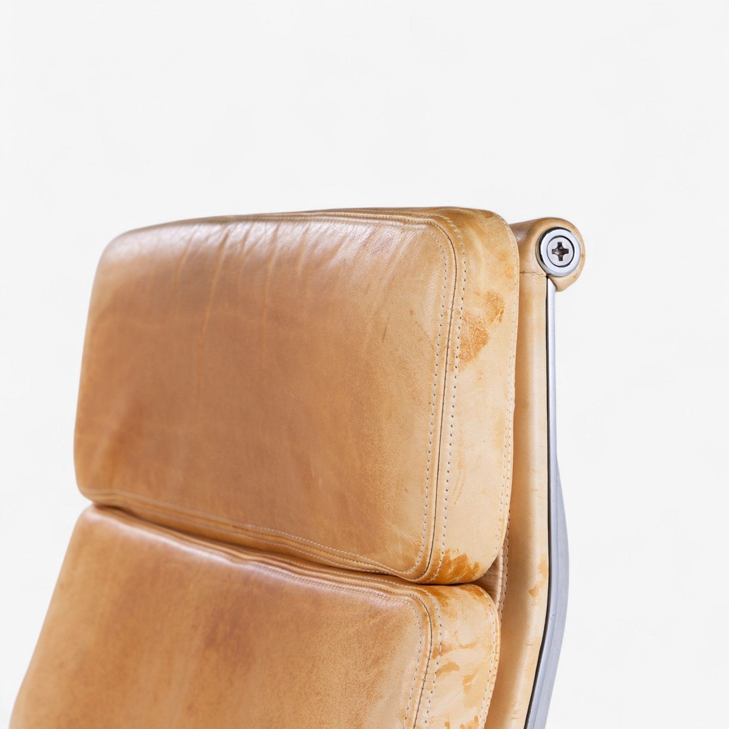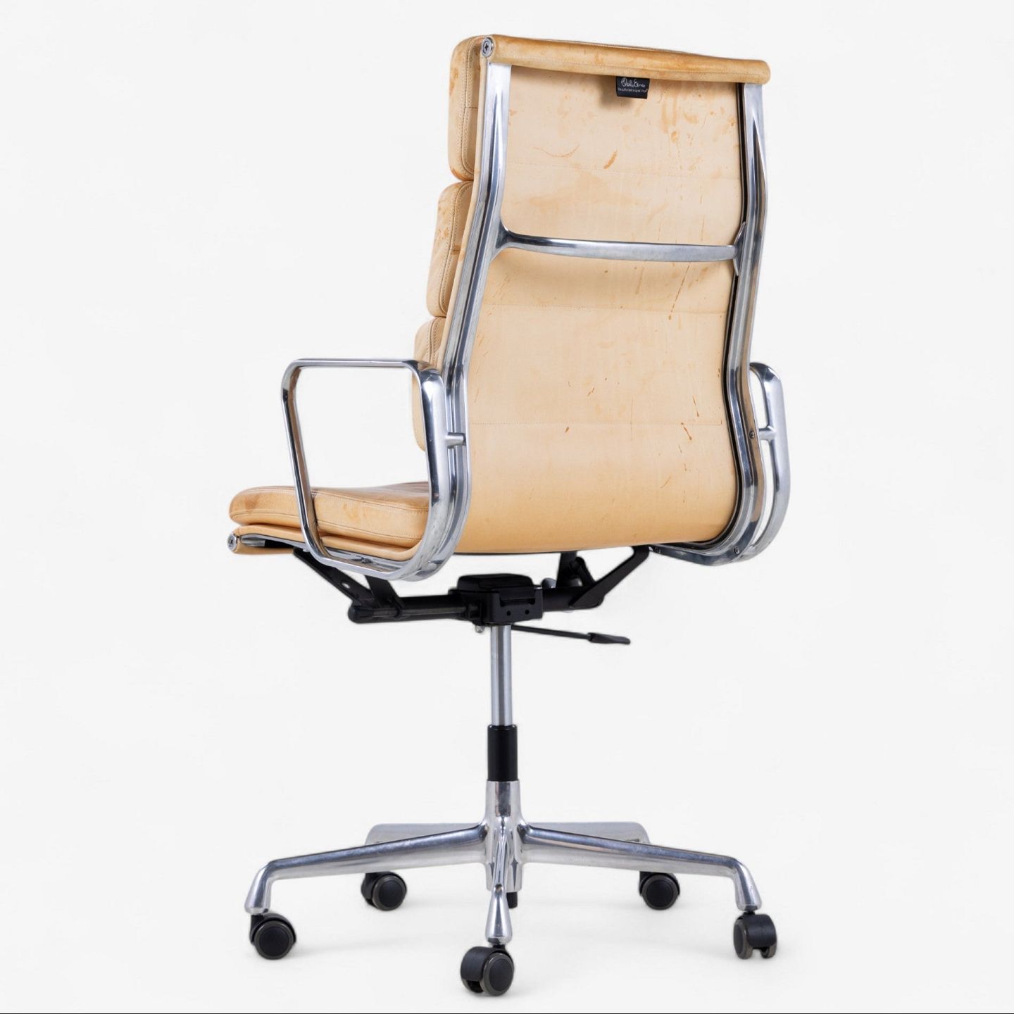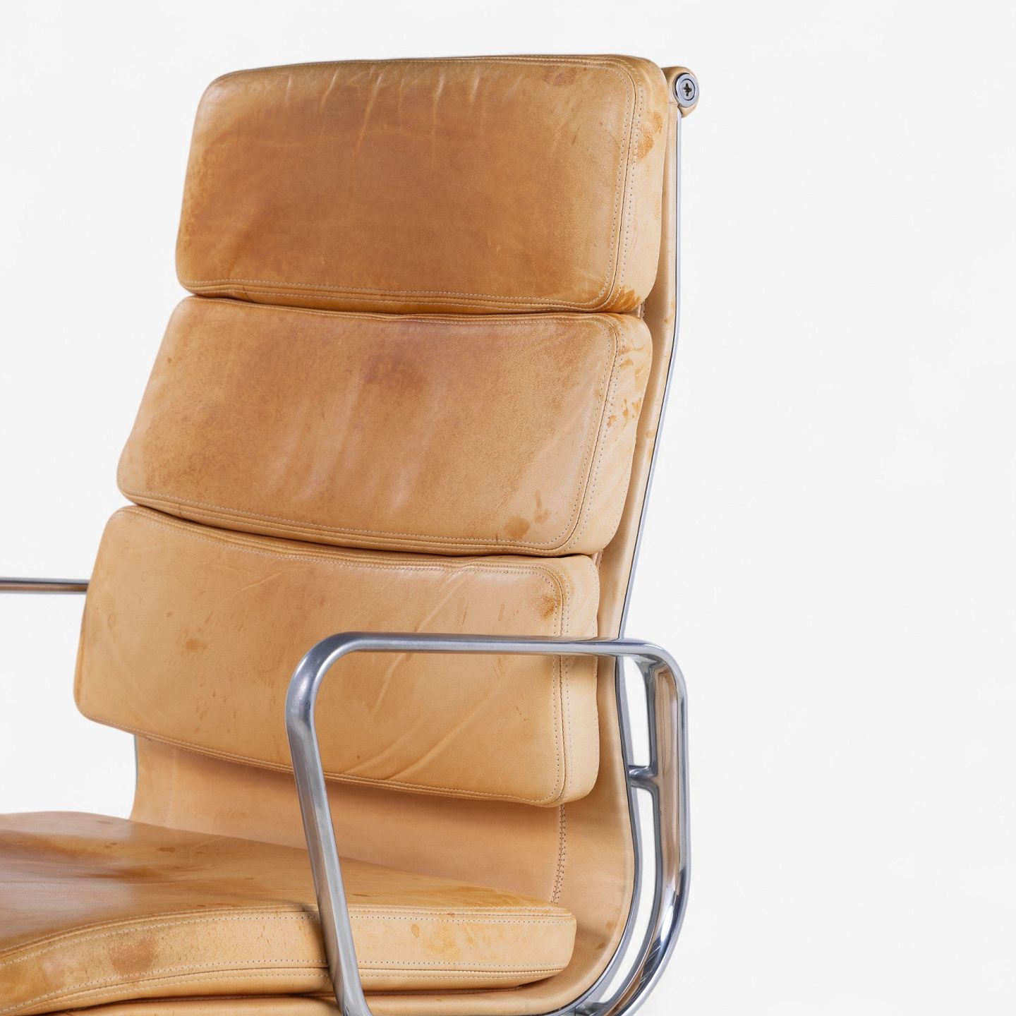 Ray & Charles Eames / Herman Miller.EA 219 - Højrygget kontorstol i patineret naturlæder på stel af stål. Mærket fra producent.