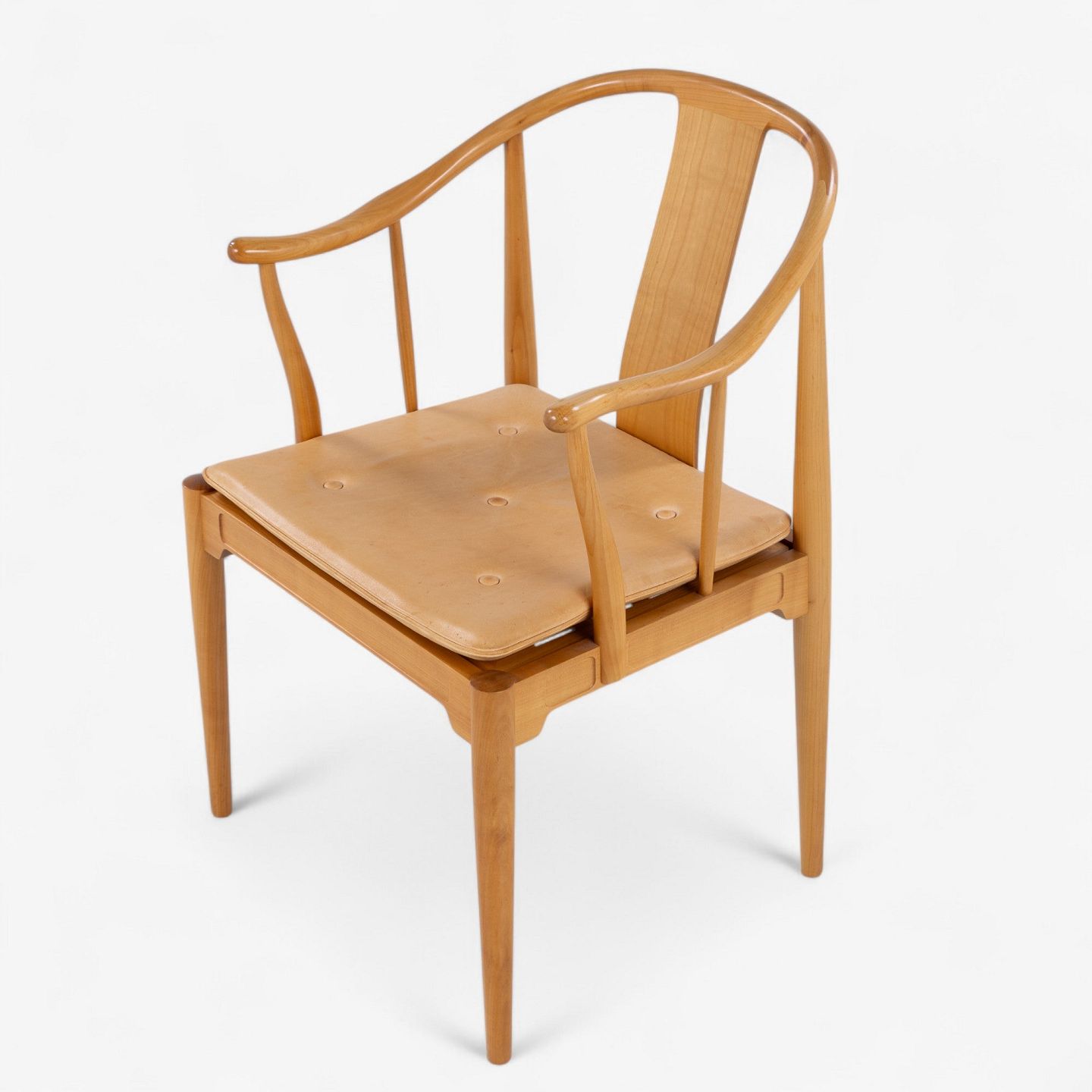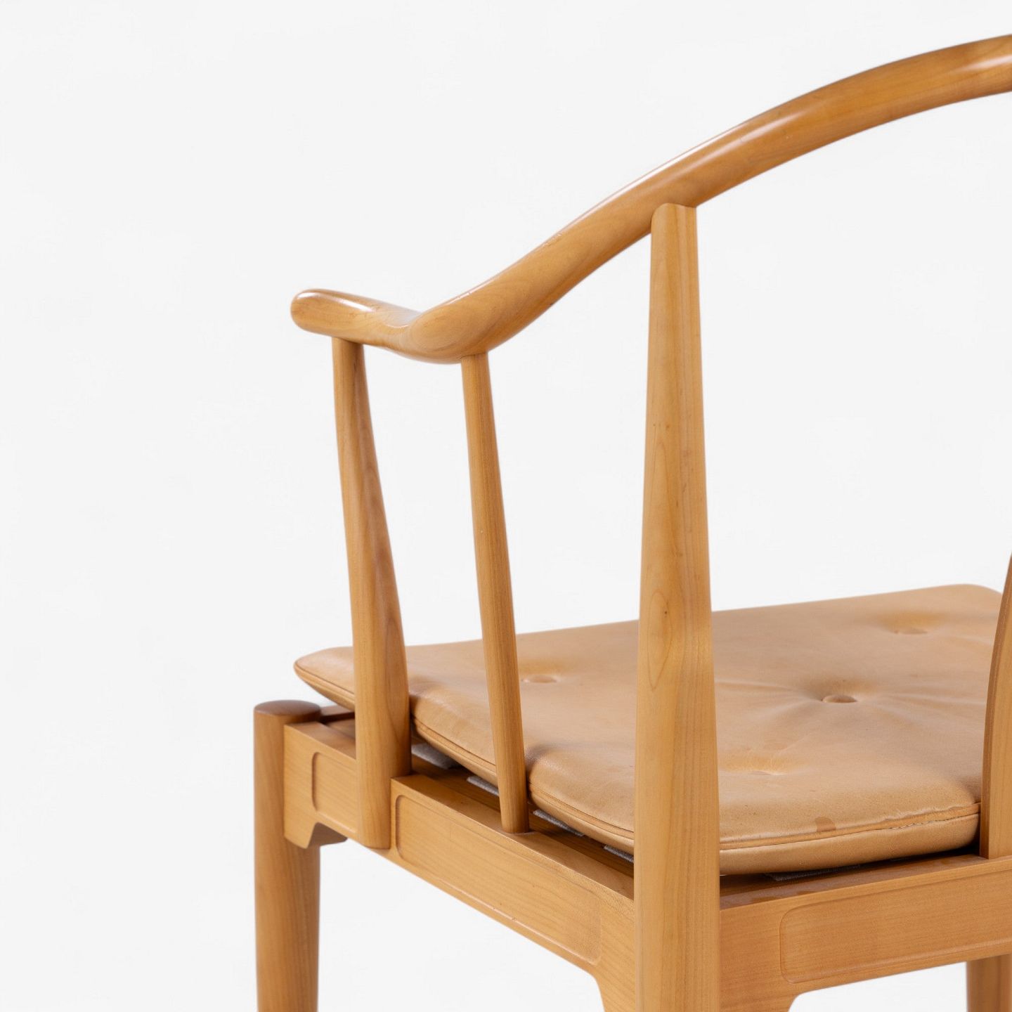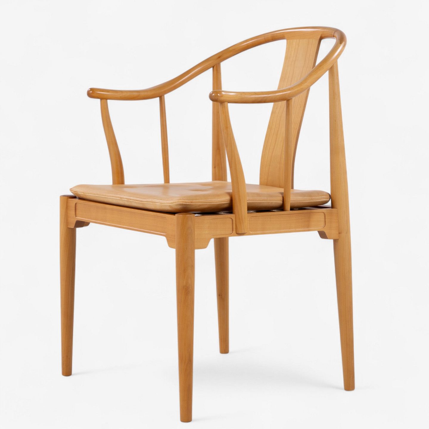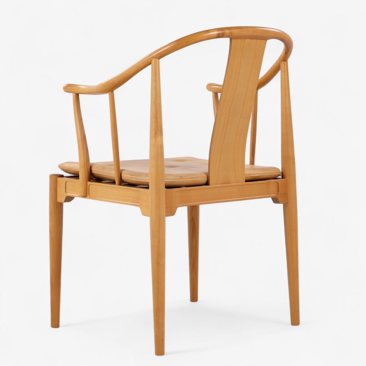 Hans J. Wegner / Fritz Hansen.FH 4283 - Kinastol i kirsebær med hynde i patineret naturlæder. Mærket fra producent.