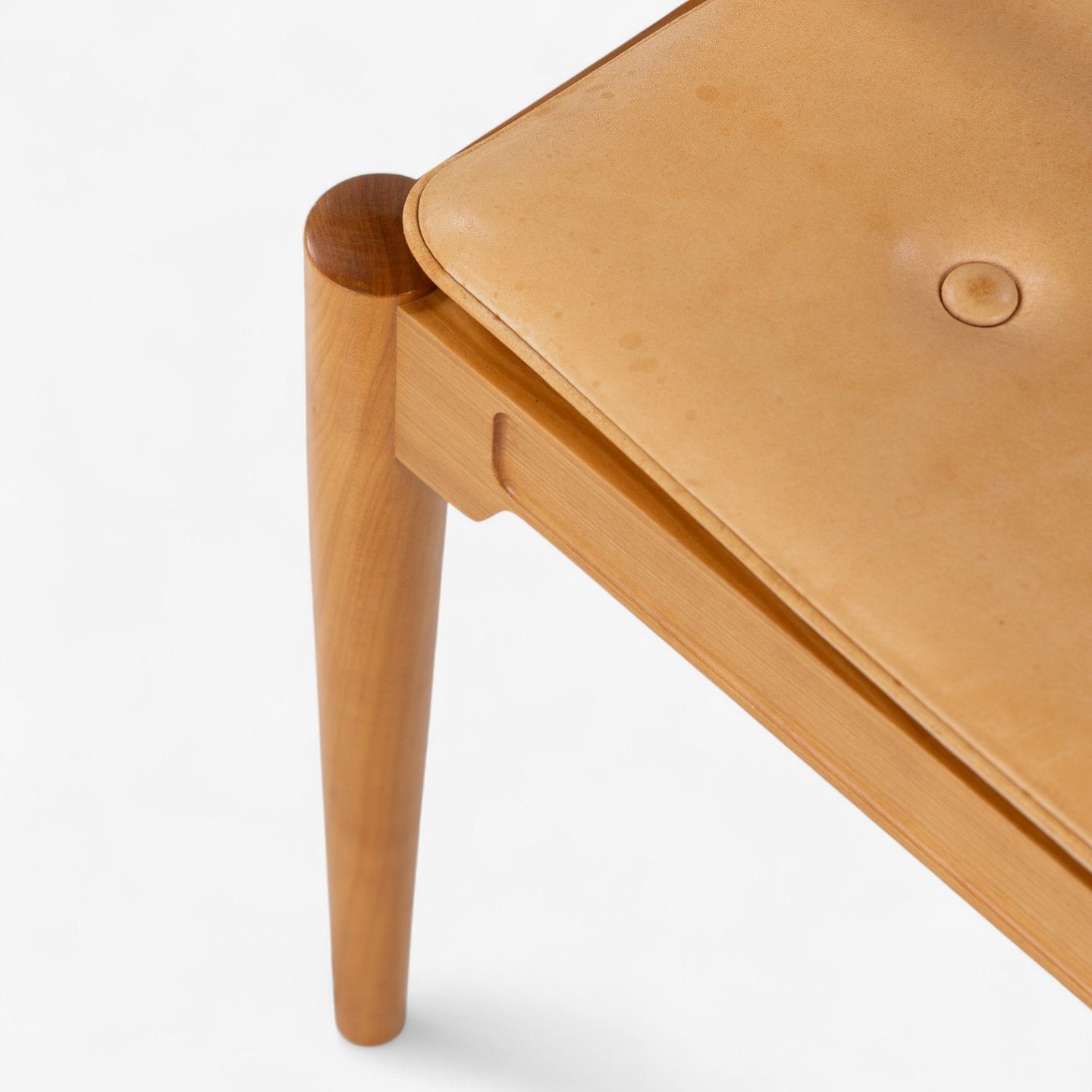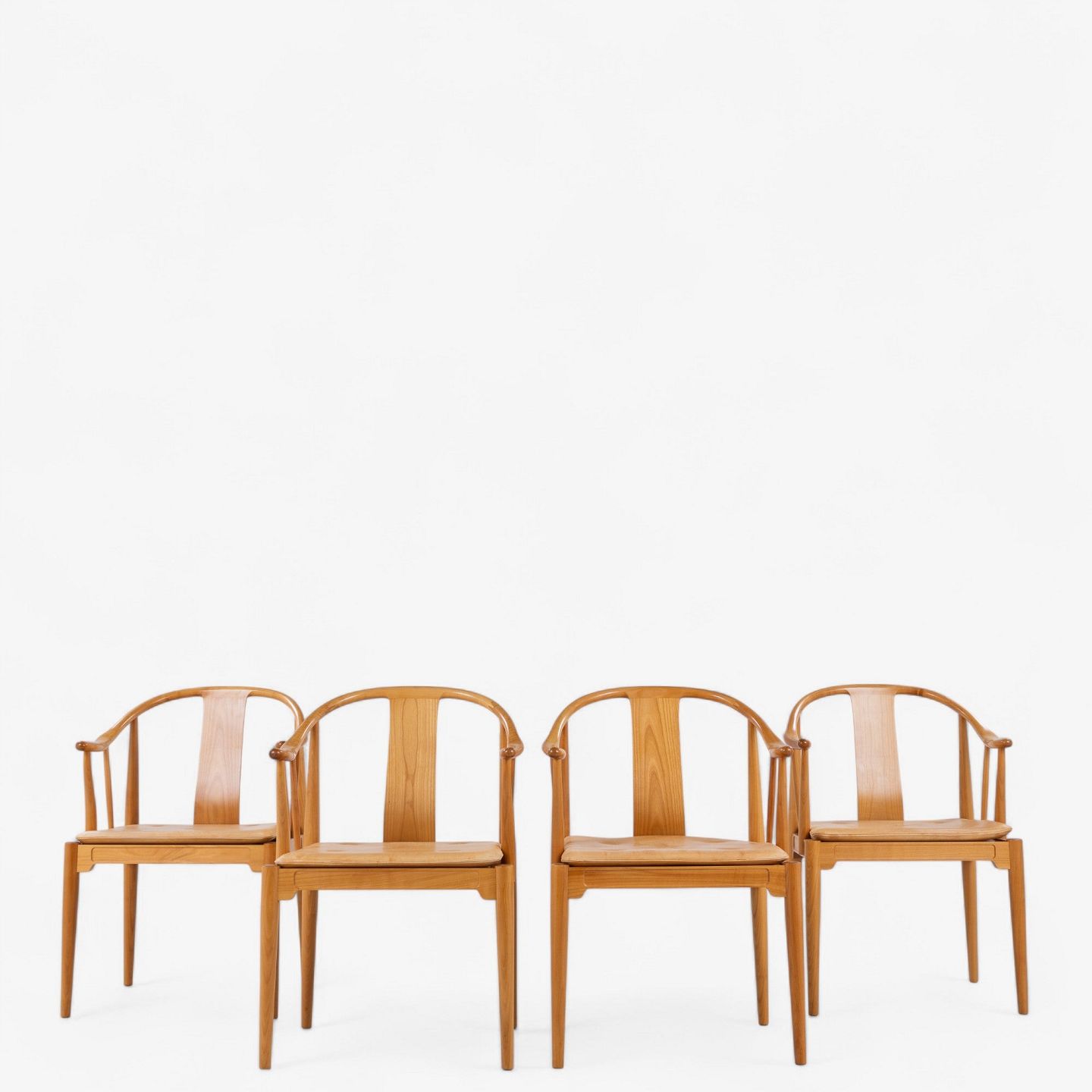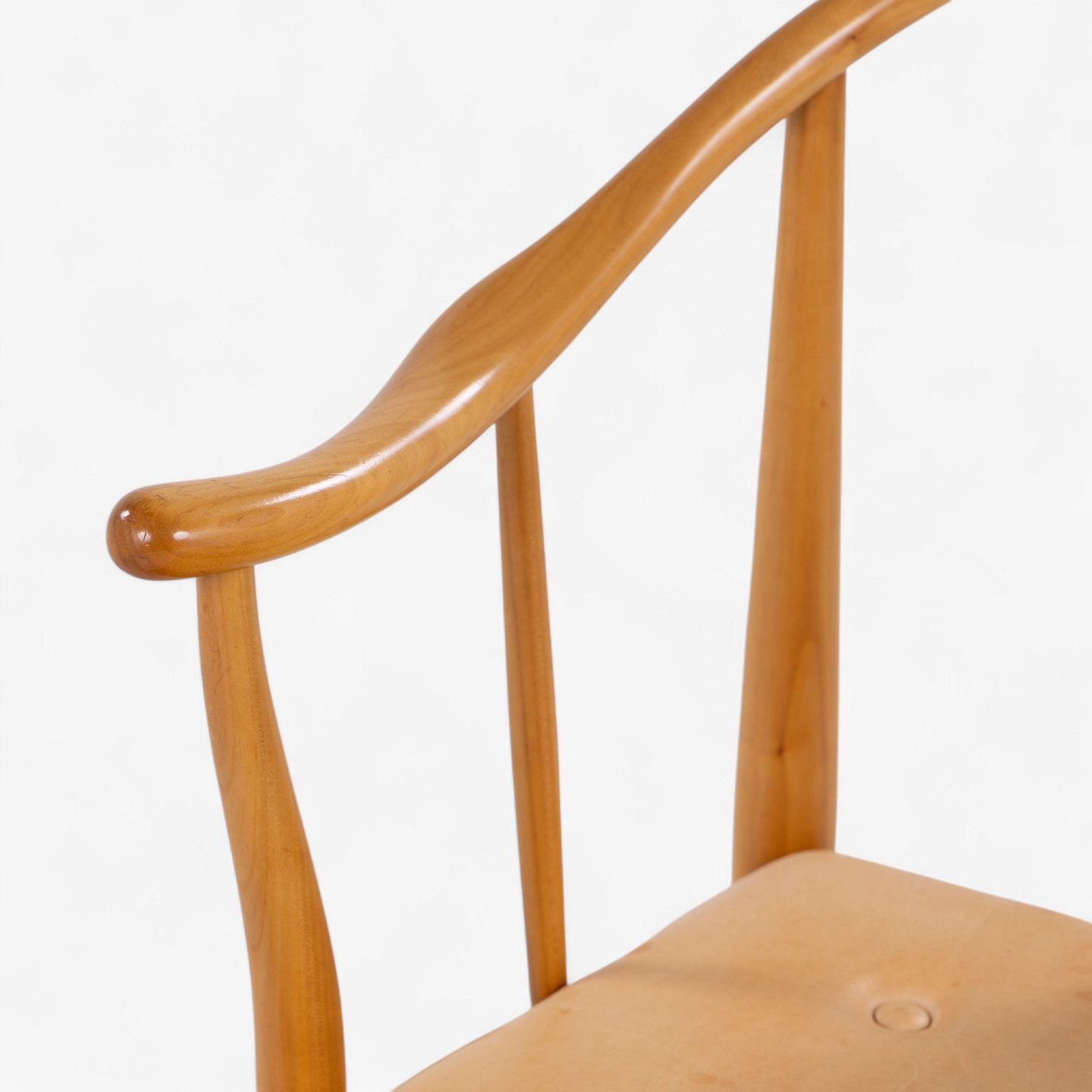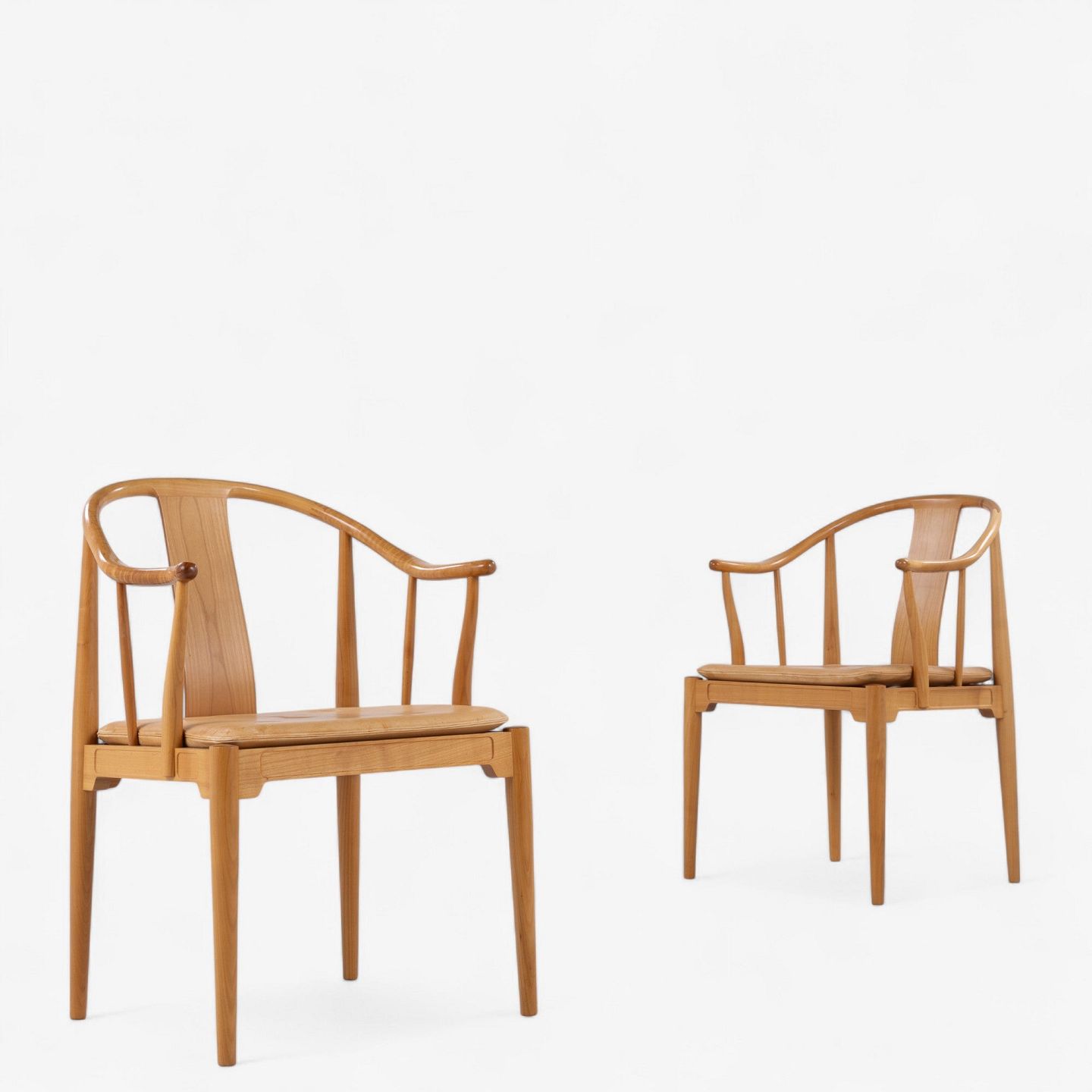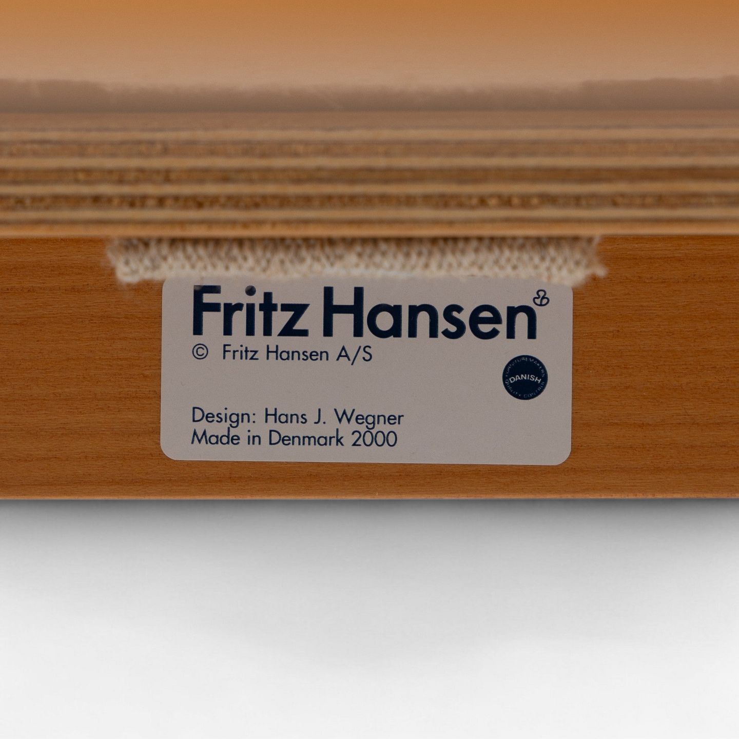 Hans J. Wegner / Fritz Hansen.FH 4283 - Kinastol i kirsebær med hynde i patineret naturlæder. Mærket fra producent.