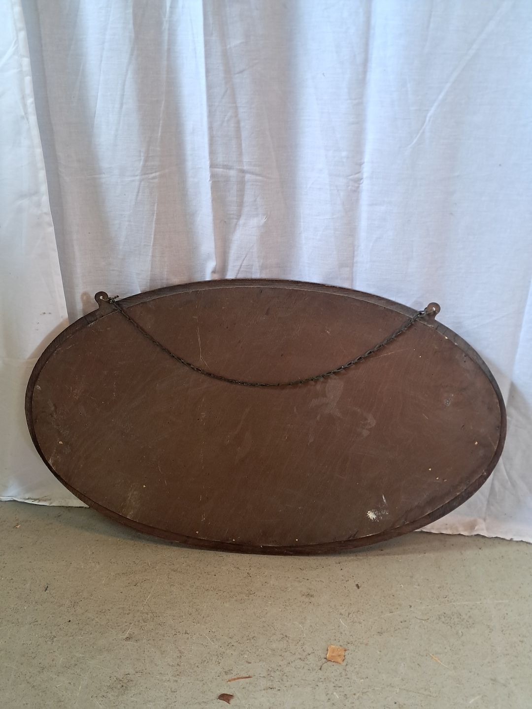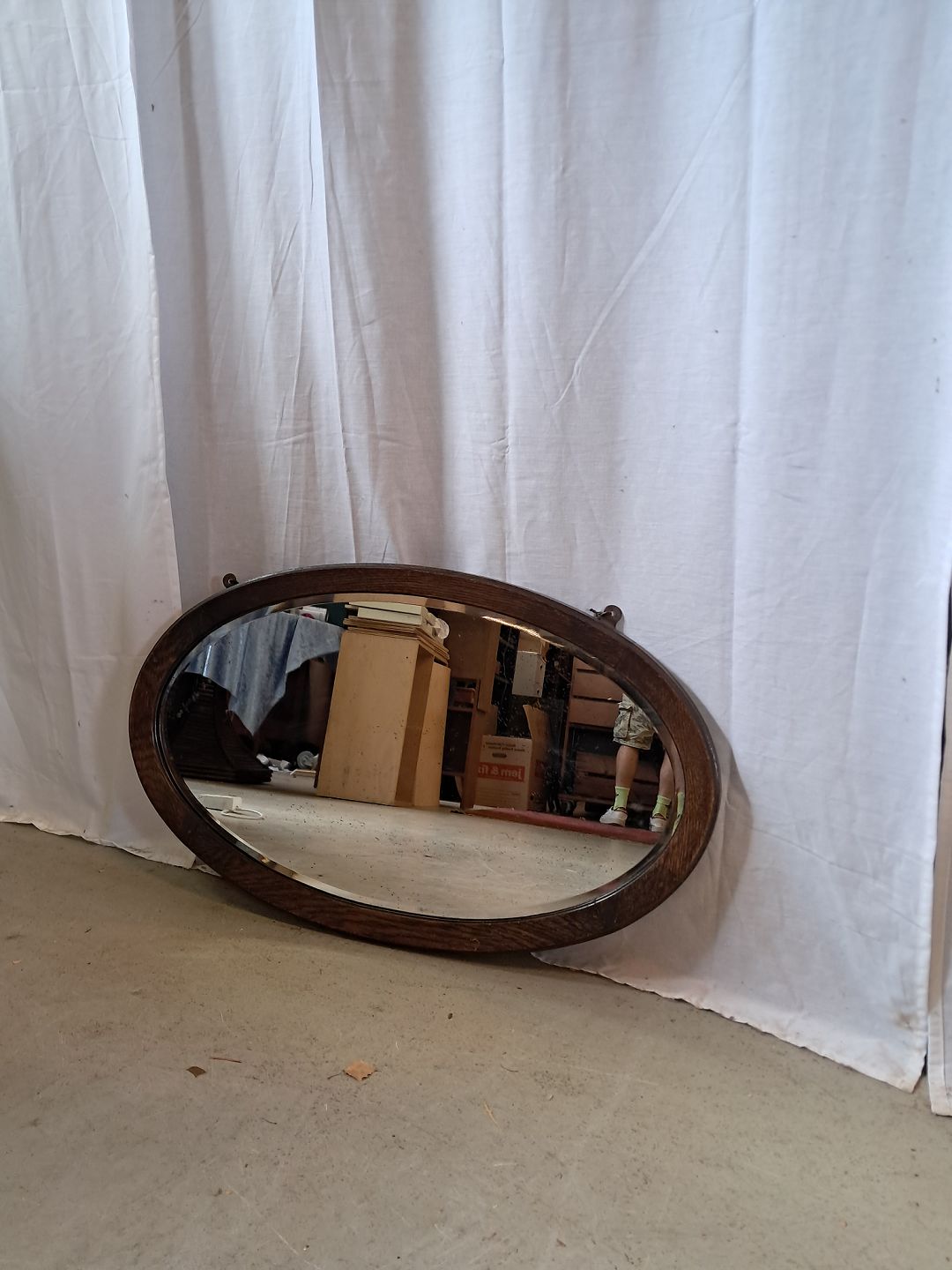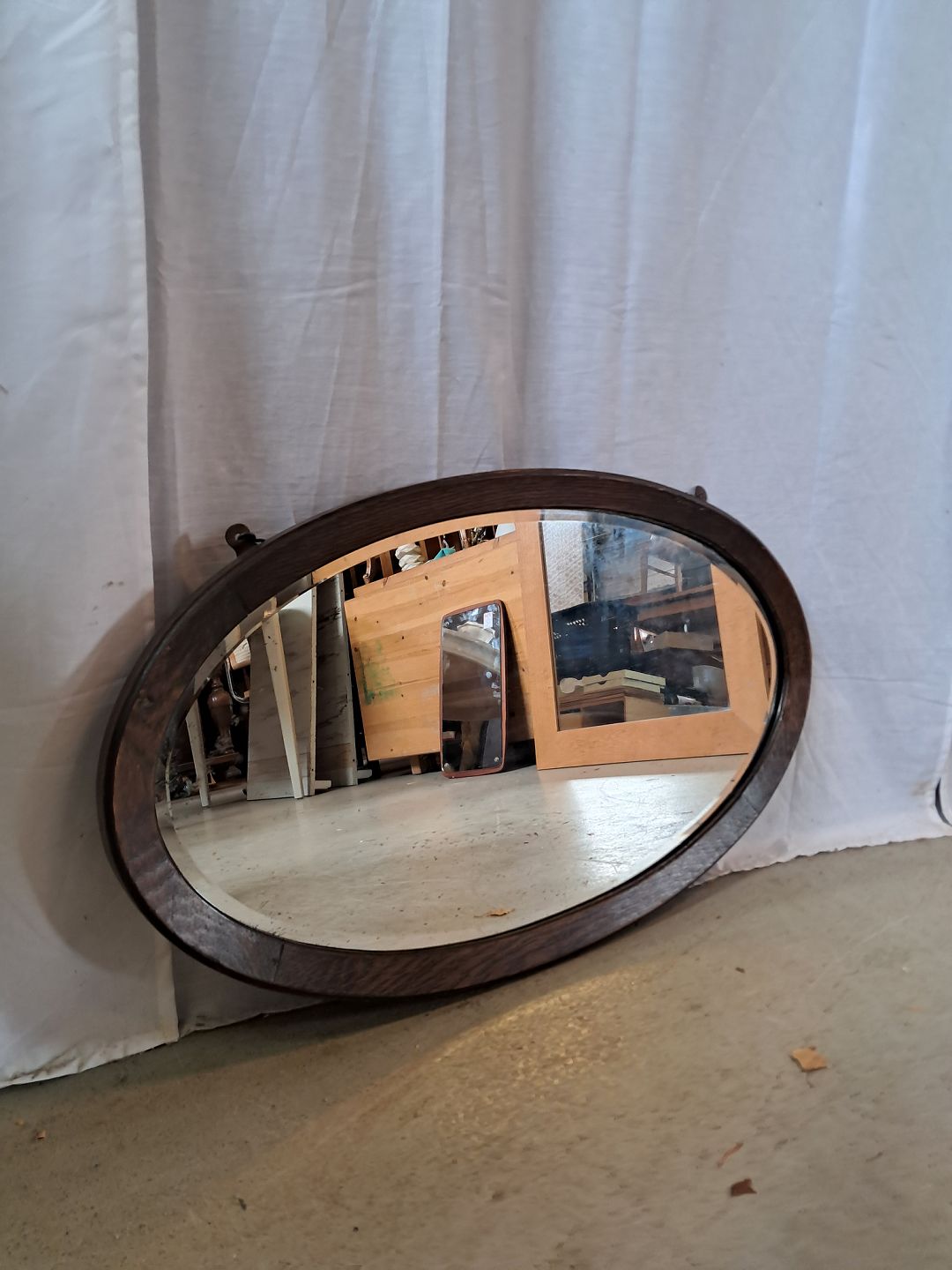 Ovalt spejl i egetræ, fra 1930erne.Det har brugsspor.