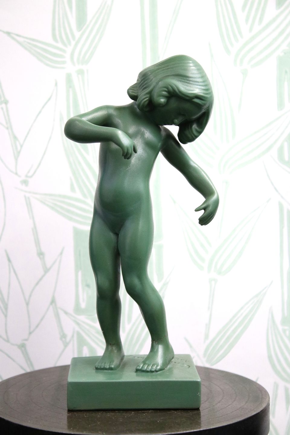 Kai Nielsen Venus figur i mørkegrøn glaseret terracotta."Venus Glypogos". fra P.Ibsen , sign. Kai Nielsen. 888 Denmark.