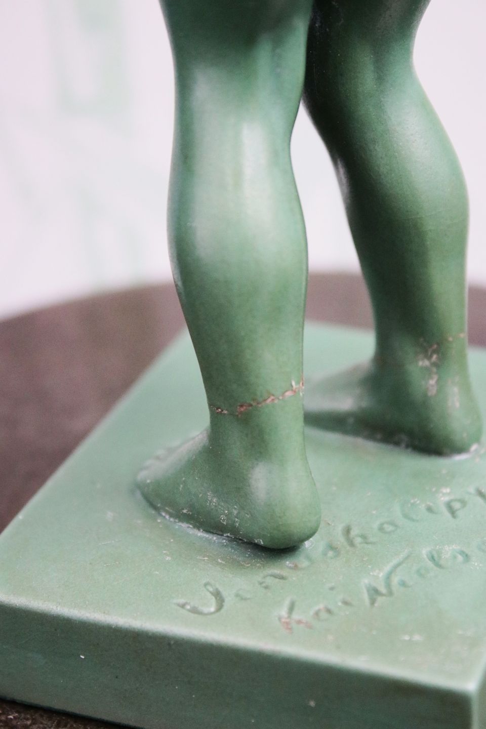 Kai Nielsen Venus figur i mørkegrøn glaseret terracotta."Venus Glypogos.