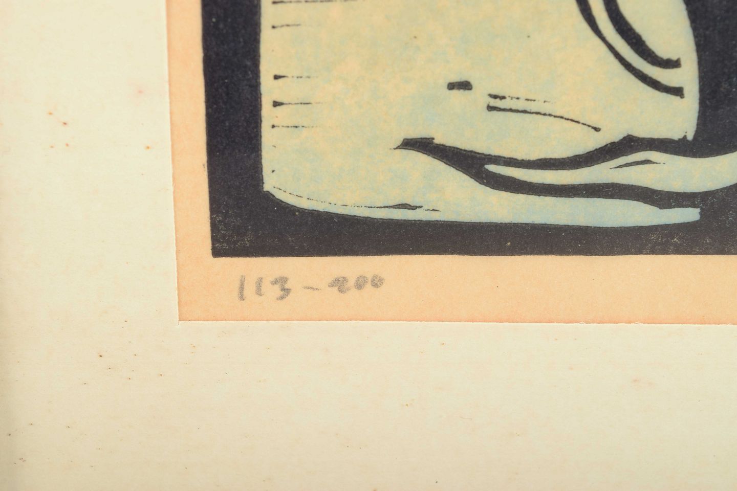 Et ekspressivt træsnit af den svenske keramiker og billedkunstner Åke Holm, der ofte arbejdede med religiøse og mytologiske motiver i sine grafiske arbejder. Motivet viser Adam og Eva i Paradisets Have med kundskabens træ og slangen, gengivet i Holm’s karakteristiske, monumentale formsprog.