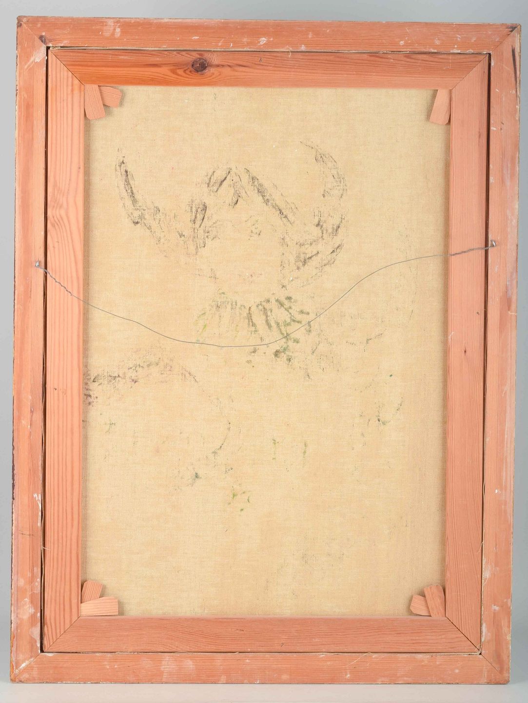 Erik LarsenMaleri, portræt af kvinde i bar med hat.