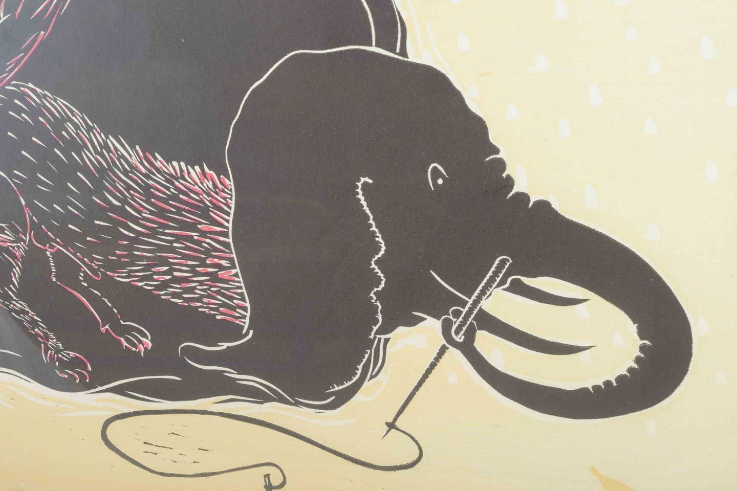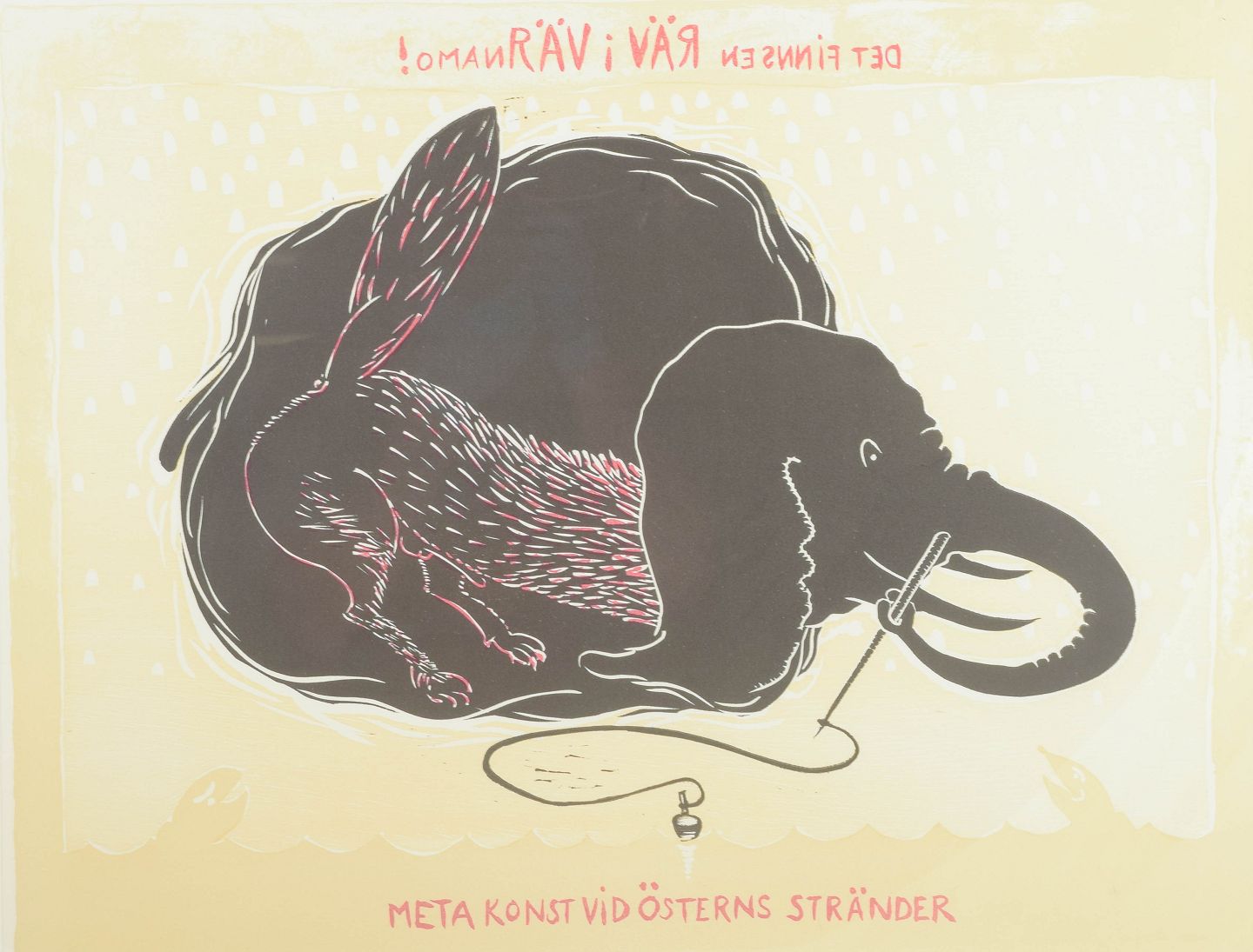 Erik DietmanLitografi med motiv af rævekrop med elefanthoved.