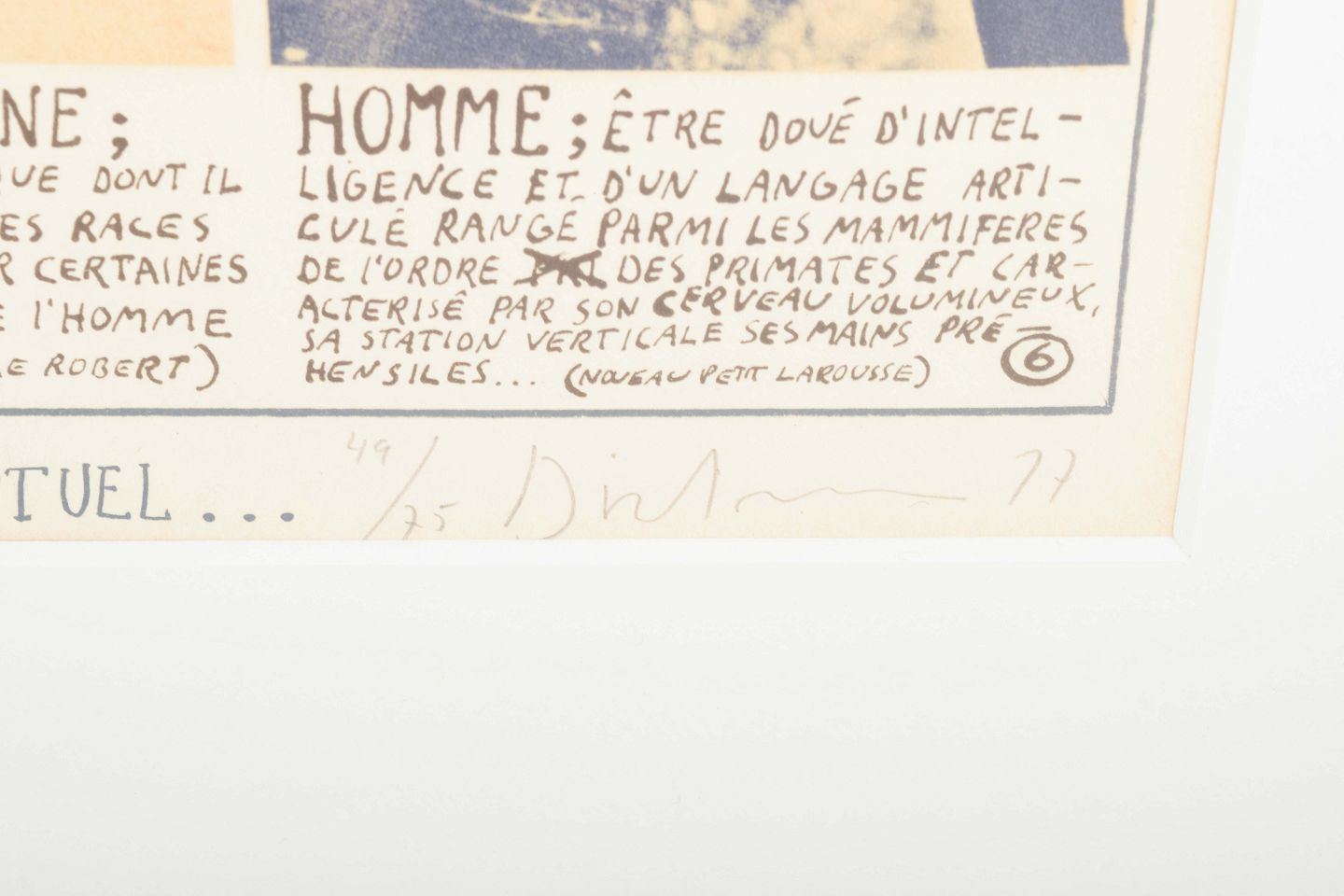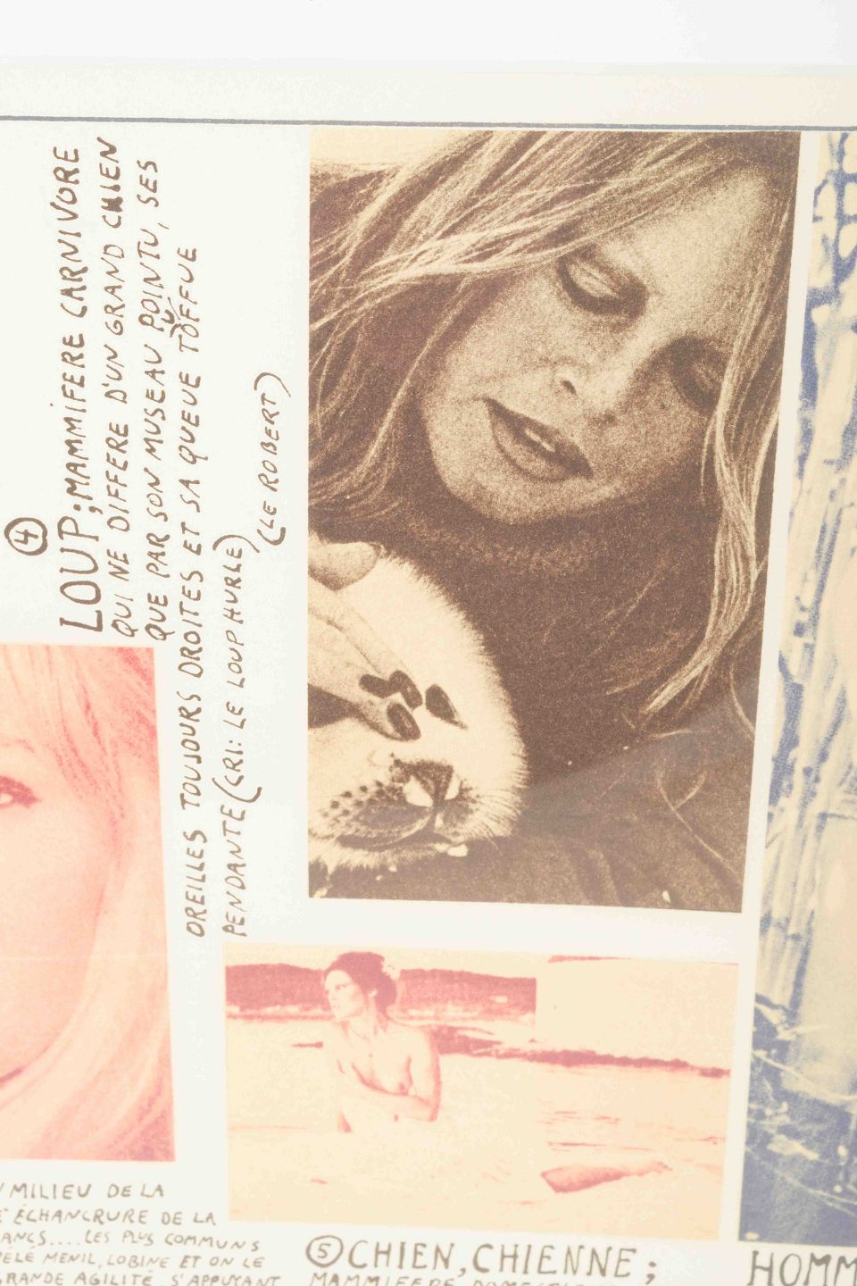 Et karakteristisk litografi af den svensk-franske kunstner Erik Dietman, hvor tekst og fotomontage indgår i en konceptuel og humoristisk bearbejdning af Brigitte Bardot.