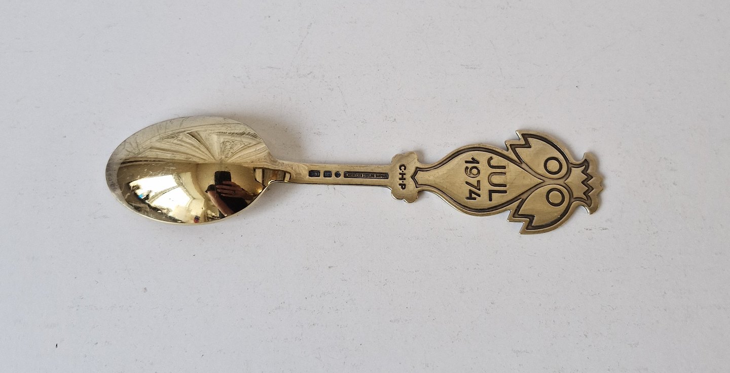 A.Michelsen juleske i forgyldt sterlingsølv med emalje 1974Stemplet: A.Michelsen - Sterling - Denmark