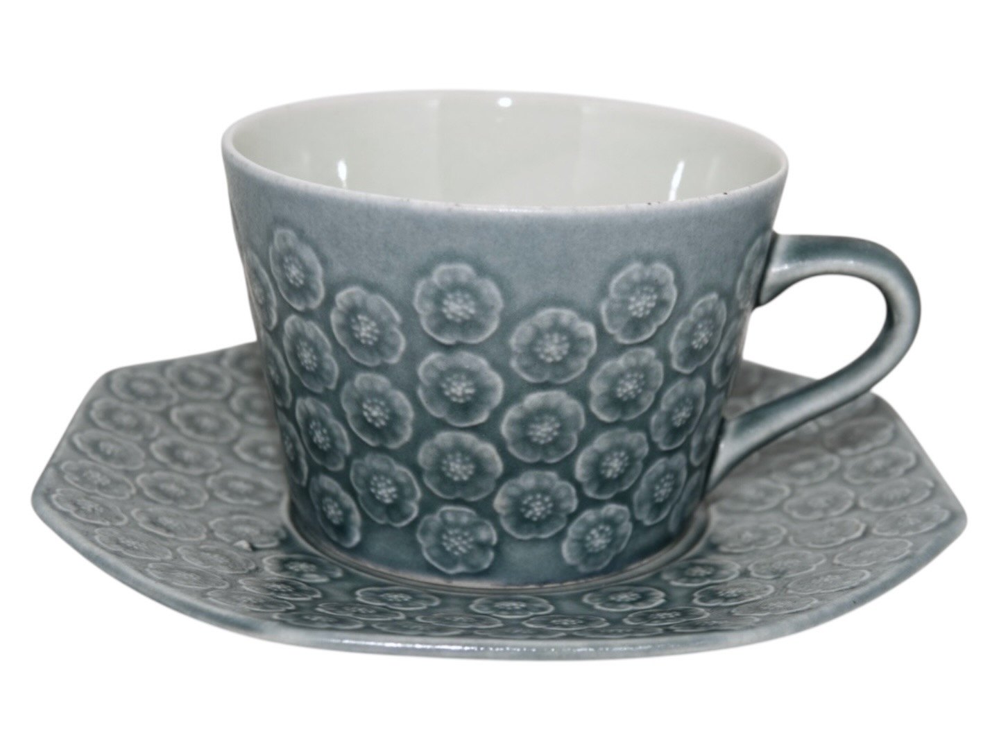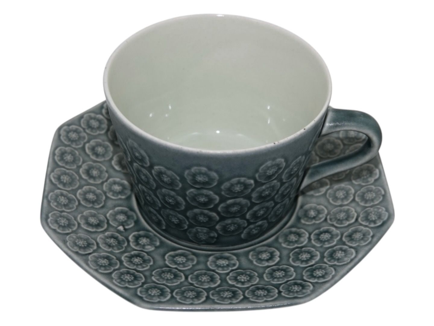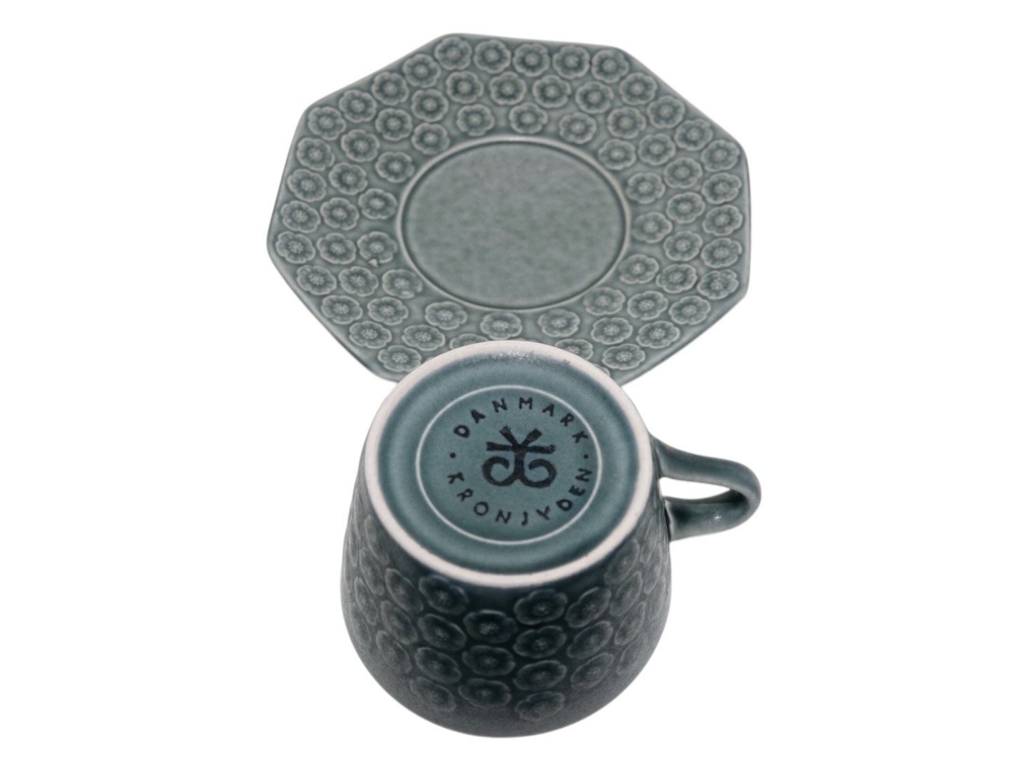Kronjyden, Azur stentøj, kop med tilhørende underkop.Designet af Jens Harald Quistgaard.