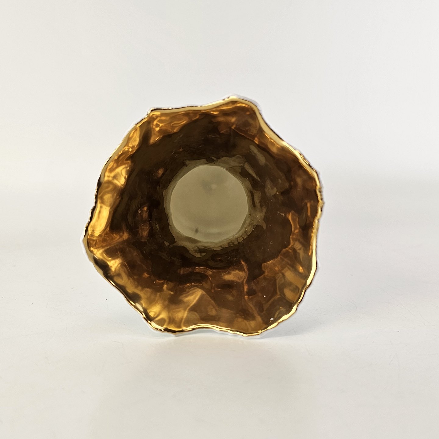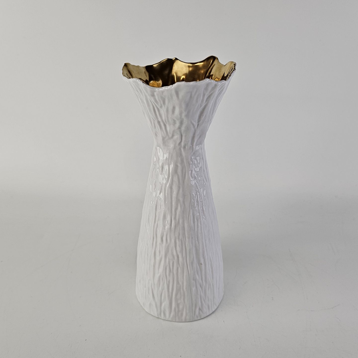 Hyacint vase i hvid keramik som er guldbelagt på indersiden i toppenFormgiver Violise Lunn