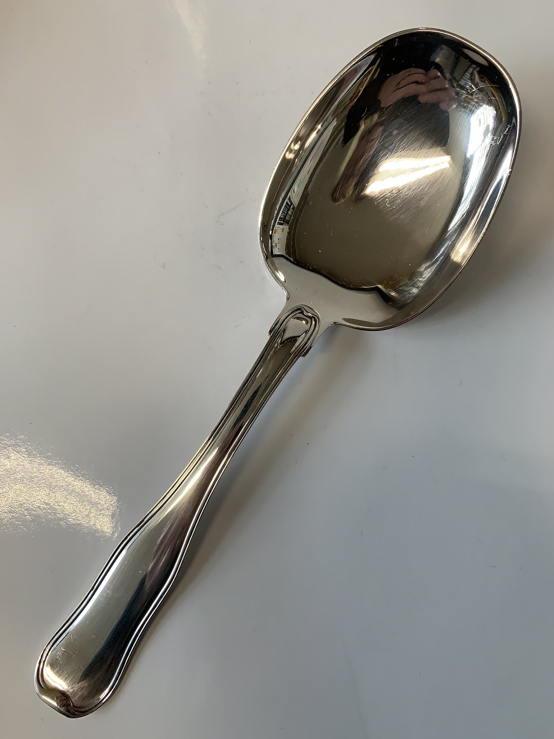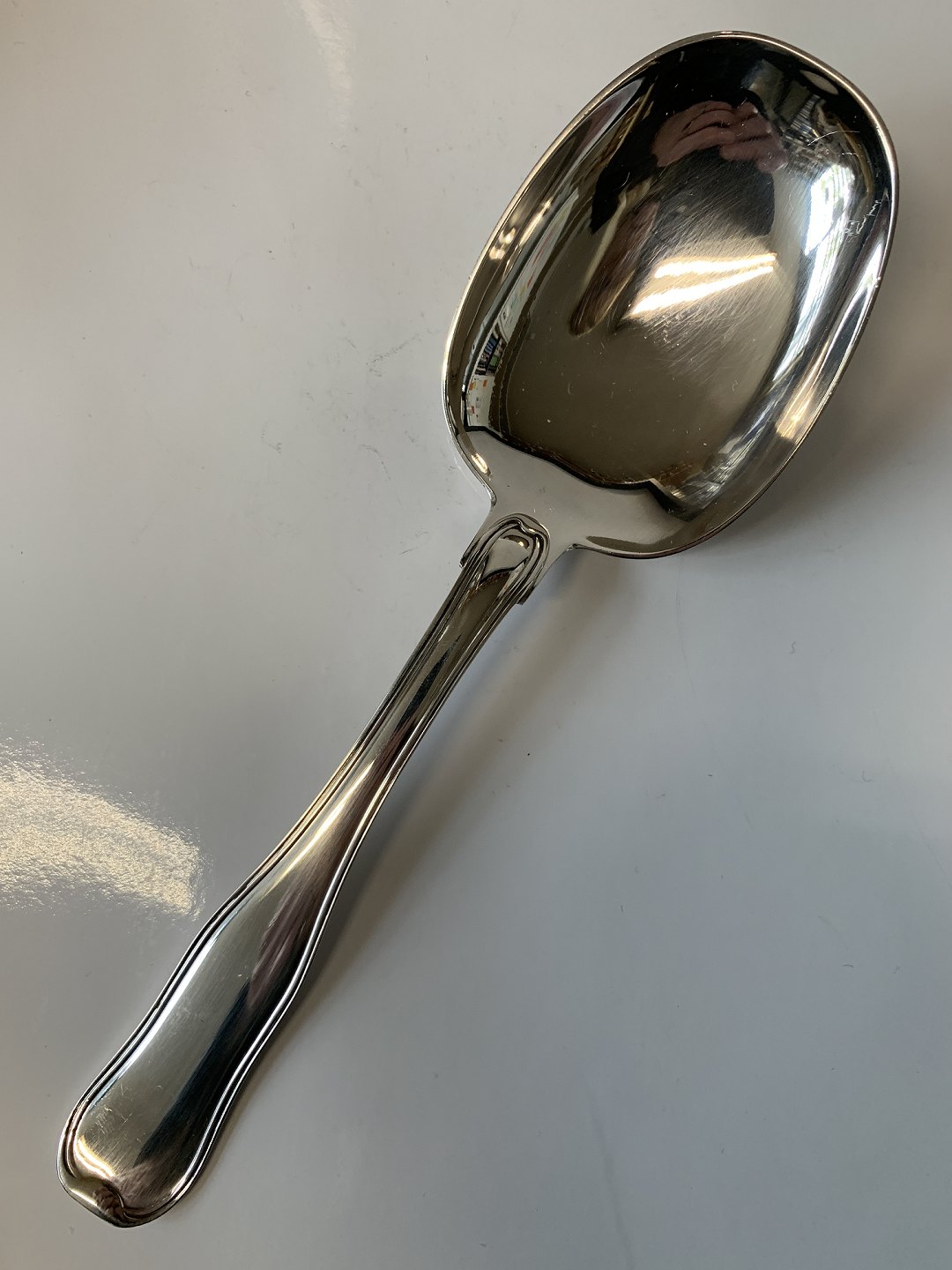 Dobbeltriflet Serveringsske Georg Jensen Sterlingsølv.Længde 20,3 cm.