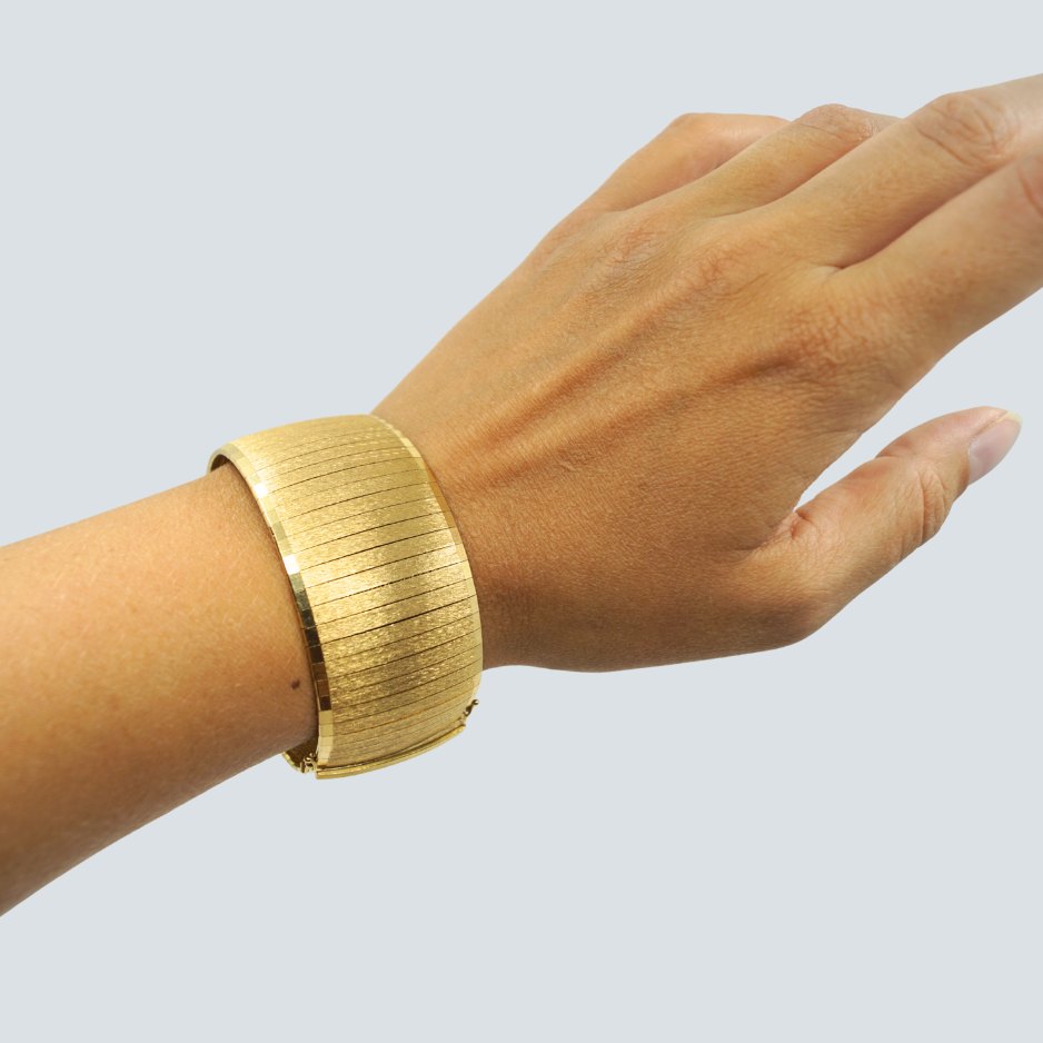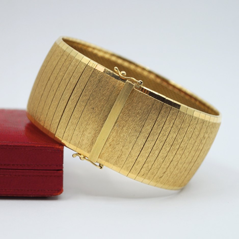 Meget bredt armbånd af 18 kt. guld i kraftig kvalitet.Med matteret overflade.