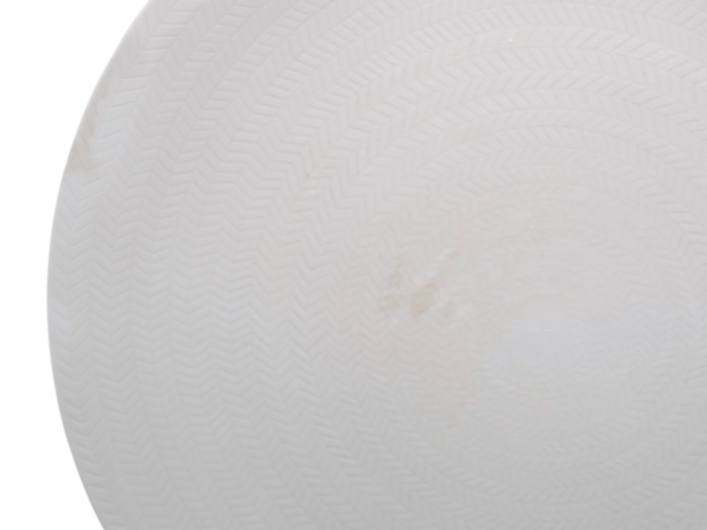 Der er en misfarve på fadet samt krakkeleringer i glasuren.