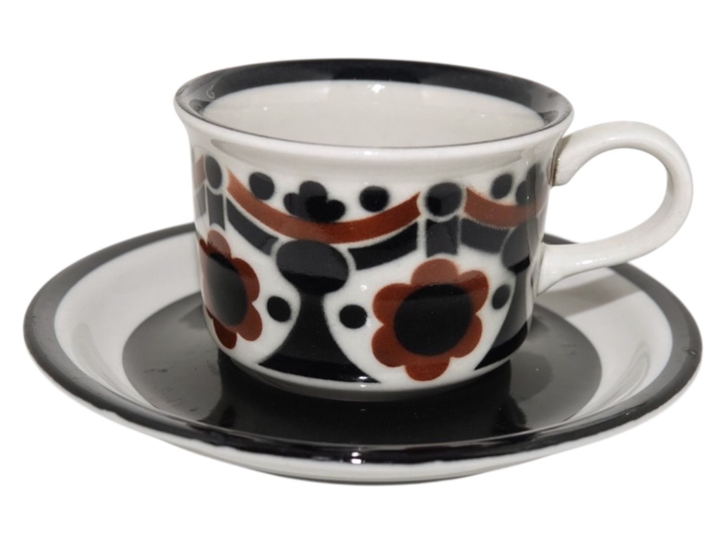 Arabia Finland Riika, kaffekop med underkop.Designet af Anja Jaatinen-Winquist i 1973.