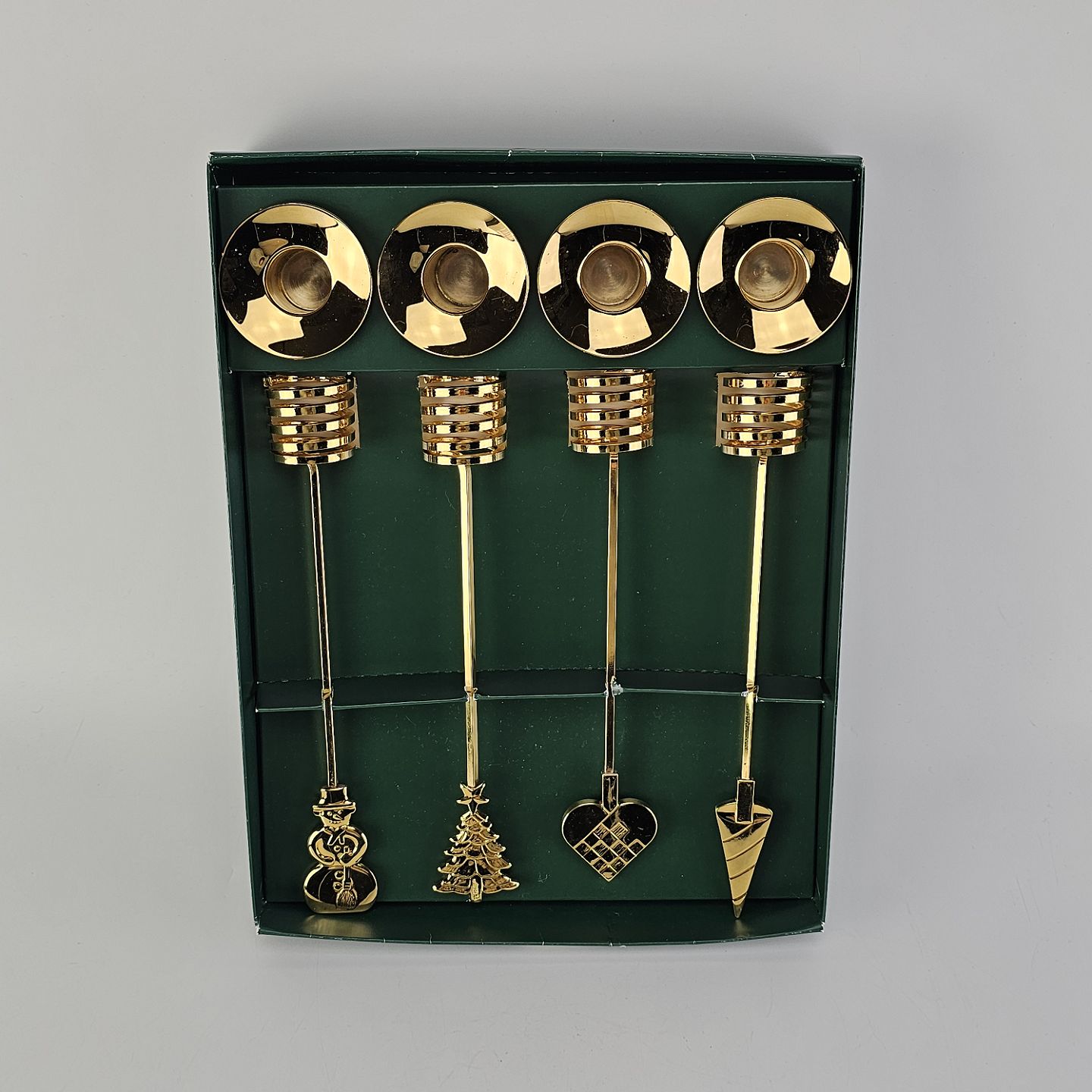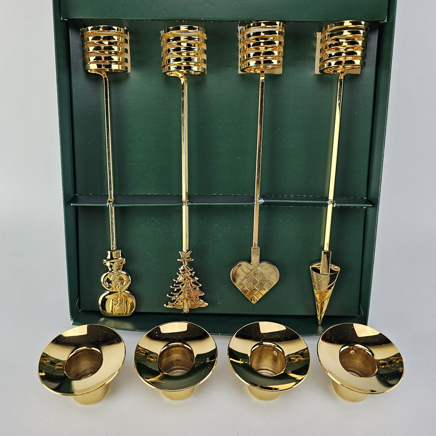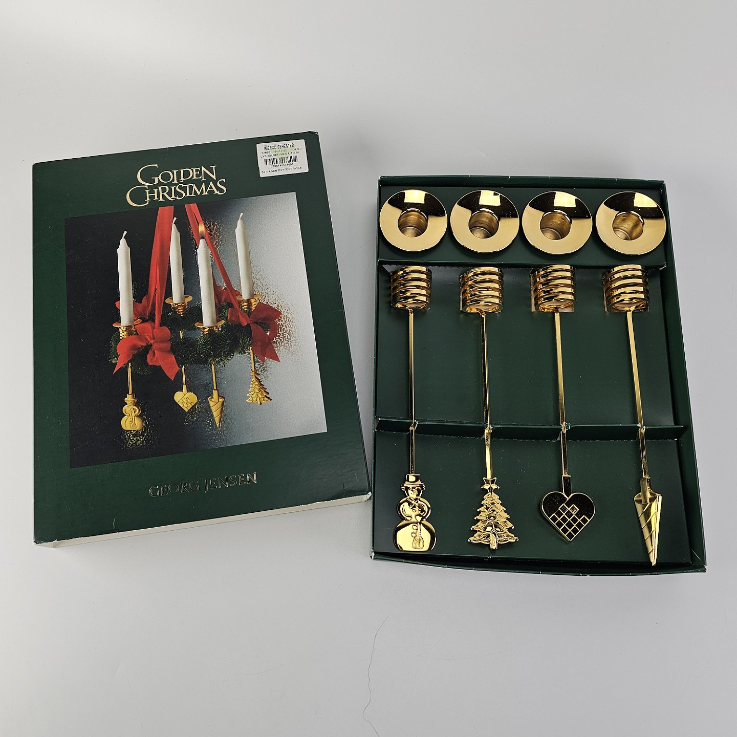 Sæt af fire guldbelagte lysholdere til adventskrans fra serien Golden Christmas i original kasseFormgiver Andreas Mikkelsen