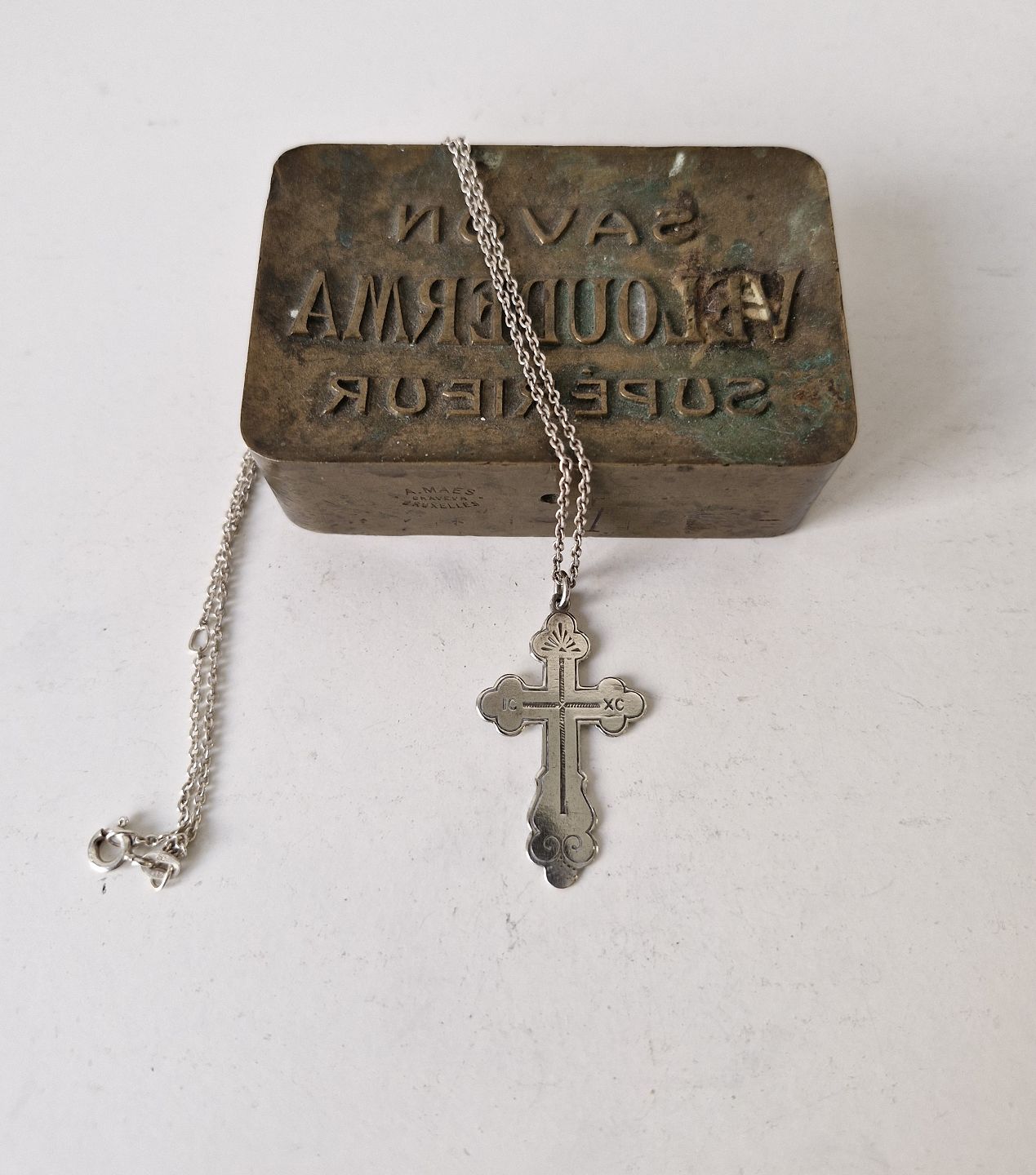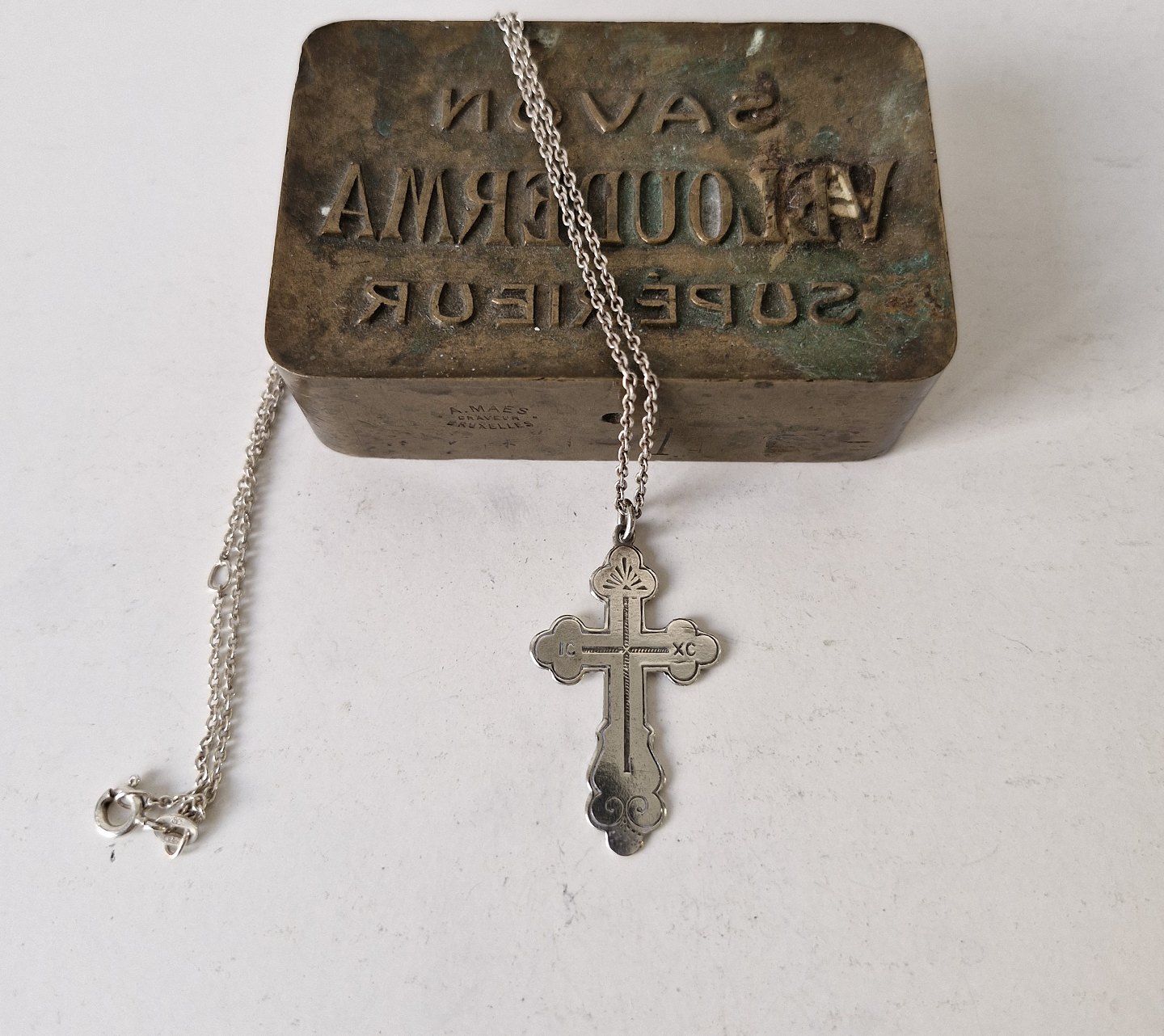 Smukt gammelt sølv kors i sølvkædeSelve korset er stemplet 813L. Kæden er stemplet 830s.